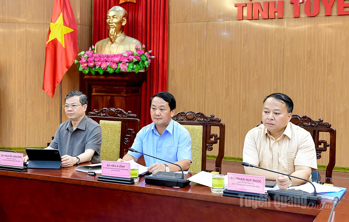 Chủ trì hội nghị tại điểm cầu tỉnh Tuyên Quang có các đồng chí: Hầu A Lềnh, Ủy viên BCH Trung ương Đảng, Bí thư Tỉnh ủy; Nguyễn Văn Sơn, Phó Bí thư Tỉnh ủy, Chủ tịch HĐND tỉnh; Phan Huy Ngọc, Phó Bí thư Tỉnh ủy, Chủ tịch UBND tỉnh.
