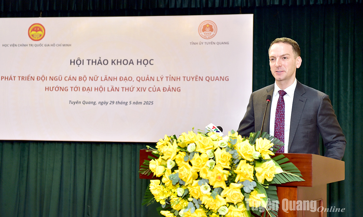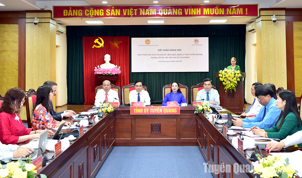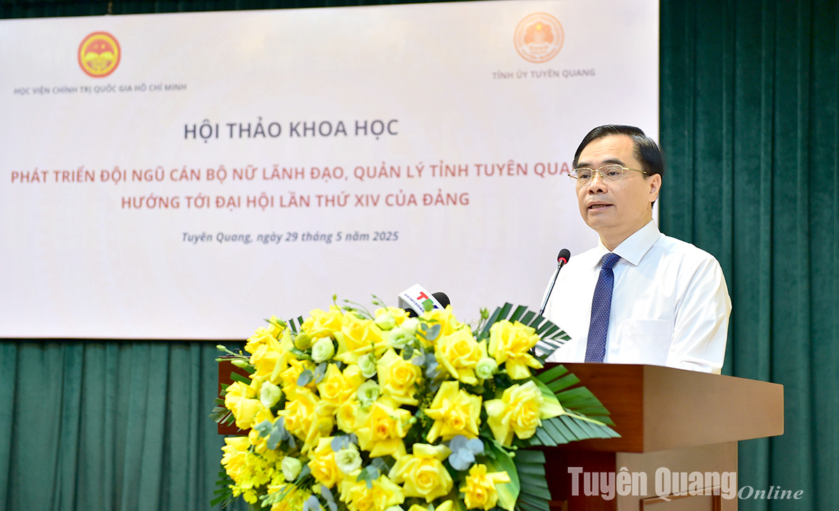 Phát biểu đề dẫn hội thảo, PGS.TS Dương Trung Ý khẳng định: Tuyên Quang là tỉnh miền núi có nhiều dân tộc thiểu số, các điều kiện kinh tế - xã hội và trình độ dân trí còn nhiều khó khăn, hạn chế. Tuy nhiên nhiều năm qua, tỉnh đã chú trọng công tác cán bộ nữ, có tỷ lệ nữ lãnh đạo các cấp cao hơn so mặt bằng chung của cả nước. Thực tiễn, kết quả công tác cán bộ nữ của Tuyên Quang không chỉ minh chứng cho hiệu quả của các chính sách phát triển nguồn nhân lực nữ mà còn là cơ sở thực tiễn quan trọng để tiếp tục nghiên cứu, đề xuất các giải pháp nâng cao tỷ lệ và chất lượng cán bộ nữ trong hệ thống chính trị. Đồng thời, mô hình công tác cán bộ nữ triển khai tại Tuyên Quang có thể là kinh nghiệm tham khảo thiết thực cho nhiều địa phương trong cả nước, nhất là trong bối cảnh chúng ta đang đẩy mạnh công cuộc đổi mới, hội nhập và phát triển bền vững.