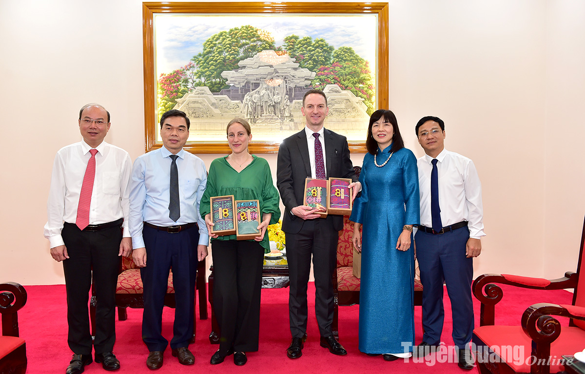 Các đồng chí lãnh đạo tỉnh tặng quà đại diện tổ chức quốc tế UNDP và Phó Đại sứ quán Ai Len tại Việt Nam.