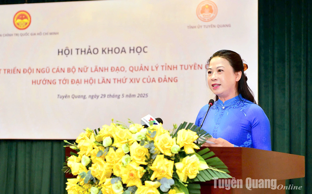 Phát biểu chào mừng hội thảo, đồng chí Phó Bí thư Thường trực Tỉnh uỷ, Chủ tịch HĐND tỉnh Lê Thị Kim Dung nhấn mạnh: Việc phát triển đội ngũ cán bộ nữ là một trong những nội dung trọng tâm trong công tác cán bộ, thể hiện rõ quan điểm của Đảng về thực hiện bình đẳng giới và nâng cao vai trò phụ nữ trong hệ thống chính trị. Đồng thời khẳng định Tuyên Quang đã có nhiều nỗ lực trong công tác quy hoạch, đào tạo, bồi dưỡng và bố trí cán bộ nữ, tuy nhiên vẫn còn không ít khó khăn, đòi hỏi phải có giải pháp đồng bộ, căn cơ, phù hợp với thực tiễn địa phương để đạt mục tiêu Đại hội XIV của Đảng.