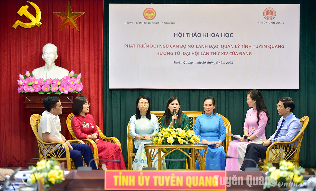 Hội thảo chia thành 2 phiên, phiên tham luận và phiên toạ đàm bàn tròn. Các đại biểu đã có nhiều tham luận tập trung làm rõ những kết quả đã đạt được trong việc triển khai các nghị quyết của Đảng, chính sách và pháp luật của Nhà nước về công tác cán bộ nữ trên địa bàn tỉnh Tuyên Quang; phân tích sâu sắc những nhân tố tạo nên thành công, những quan điểm, cách tiếp cận mới, cách làm hay, sáng tạo, đồng thời rút ra bài học kinh nghiệm có giá trị thực tiễn cao, phục vụ trực tiếp cho công tác chuẩn bị nhân sự nữ tham gia đội ngũ lãnh đạo, quản lý của tỉnh trong nhiệm kỳ 2025-2030; phân tích những bất cập và quá trình thể chế hóa, cụ thể hóa, những điểm nghẽn chính sách, vướng mắc trong thực tiễn về công tác phát triển cán bộ nữ.