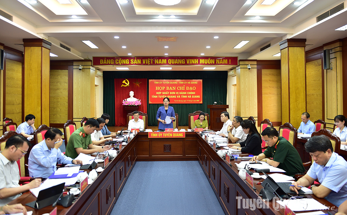 Tại cuộc họp, Ban Thường vụ Đảng ủy UBND tỉnh Tuyên Quang đã thông qua dự thảo Đề án hợp nhất đơn vị hành chính tỉnh Tuyên Quang và tỉnh Hà Giang. Dự thảo Đề án gồm 4 phần gồm: Căn cứ chính trị, pháp lý và sự cần thiết sắp xếp, hợp nhất đơn vị hành chính cấp tỉnh; lịch sử hình thành và hiện trạng đơn vị hành chính cấp tỉnh; phương án sắp xếp đơn vị hành chính cấp tỉnh; đánh giá tác động và tổ chức thực hiện.