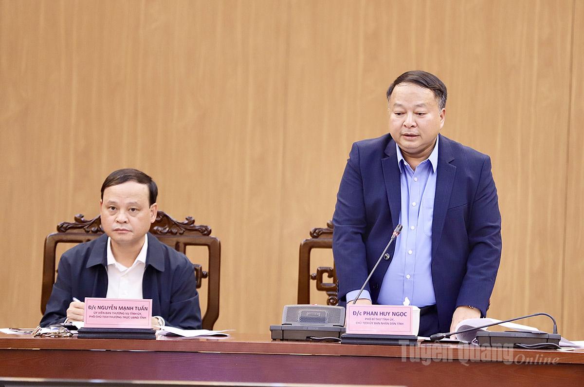 Chủ tịch UBND tỉnh Phan Huy Ngọc nhận định tình hình giải ngân còn rất nhiều khó khăn, nguyên nhân chủ yếu vẫn từ các yếu tố chủ quan. Đồng chí yêu cầu các địa phương, chủ đầu tư đối chiếu số liệu chính xác theo thực tế kết quả hoàn thành giải ngân; Sở Tài chính chủ trì tham mưu tổng hợp, xây dựng báo cáo, biểu thống kê khoa học, chính xác, đúng bản chất, phân định rõ các nguồn vốn, thời hạn giải ngân để nhìn rõ tiến độ, có định hướng chỉ đạo tập trung vào từng dự án, nguồn vốn, phần việc cụ thể phân kỳ thực hiện; Văn phòng UBND tỉnh và Sở Tài chính phối hợp rà soát nguồn vốn giao cho Công an tỉnh mua sắm tài sản công và vốn dự kiến bố trí đối ứng nguồn vốn xây dựng Trụ sở Công an tỉnh báo cáo UBND tỉnh cho chủ trương bố trí, giải ngân sang các dự án khác.