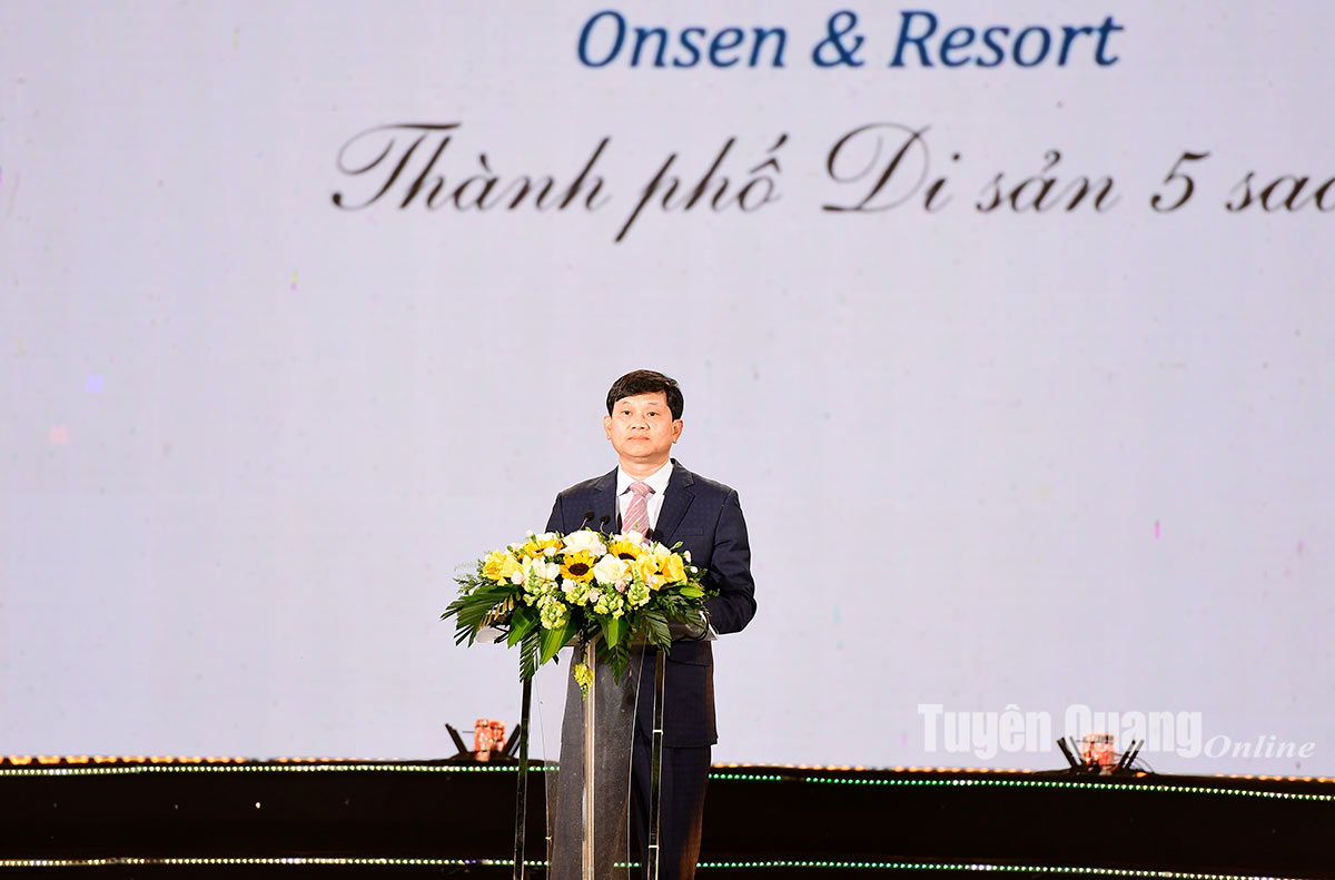 Đồng chí Hoàng Việt Phương, Ủy viên BCH Đảng bộ tỉnh, Phó Chủ tịch UBND tỉnh phát biểu khai mạc Năm du lịch tỉnh Tuyên Quang năm 2025.