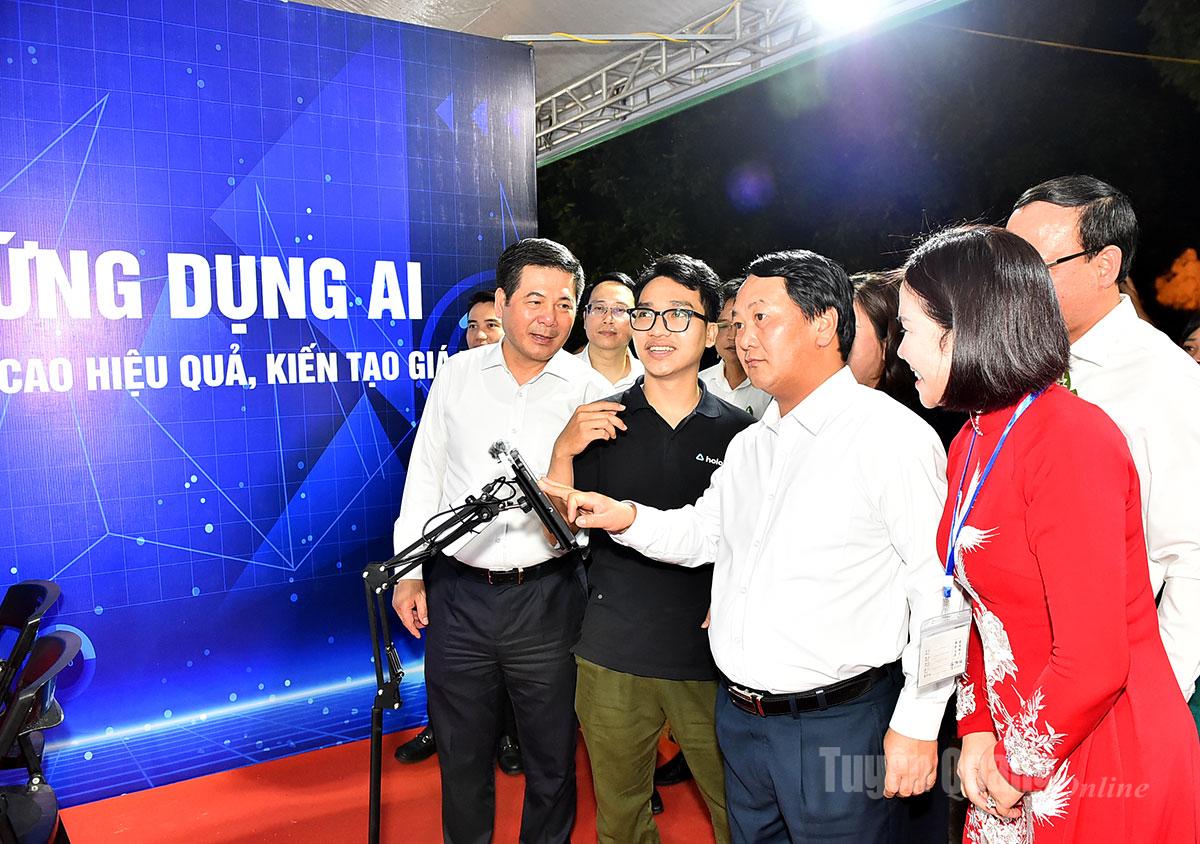 Các đại biểu tìm hiểu ứng dụng AI được giới thiệu tại Hội chợ triển lãm.