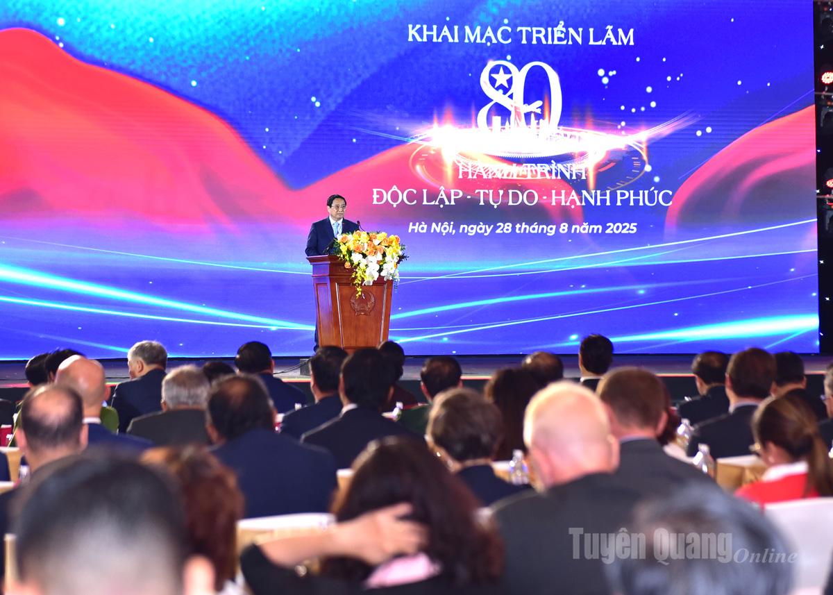Phát biểu tại buổi lễ, Thủ tướng Chính phủ Phạm Minh Chính nhấn mạnh, triển lãm được tổ chức với quy mô lớn nhất từ trước đến nay, với nhiều tư liệu, tài liệu hiện vật… phản ánh sinh động, toàn diện, nổi bật thành tựu 80 năm phát triển của đất nước dưới sự lãnh đạo của Đảng cộng sản Việt Nam. Đồng thời, phản ánh đậm đà bản sắc văn hoá dân tộc, gắn truyền thống với hiện đại, tôn vinh vẻ đẹp thiên nhiên, đất nước, con người Việt Nam và khát vọng vươn mình hội nhập và phát triển. Thủ tướng Chính phủ khẳng định triển lãm còn là một "trường học sống động", với sự kết hợp hài hòa giữa truyền thống và hiện đại, đưa lịch sử trở nên gần gũi, dễ tiếp cận, để những thế hệ hôm nay hiểu rõ hơn về nguồn cội, về những hy sinh to lớn và thành tựu của các thế hệ cha anh đi trước; từ đó tiếp thêm động lực, truyền cảm hứng, nuôi dưỡng khát vọng đưa đất nước vững bước tiến vào kỷ nguyên mới, kỷ nguyên vươn mình giàu mạnh, văn minh, phồn vinh, thịnh vượng.