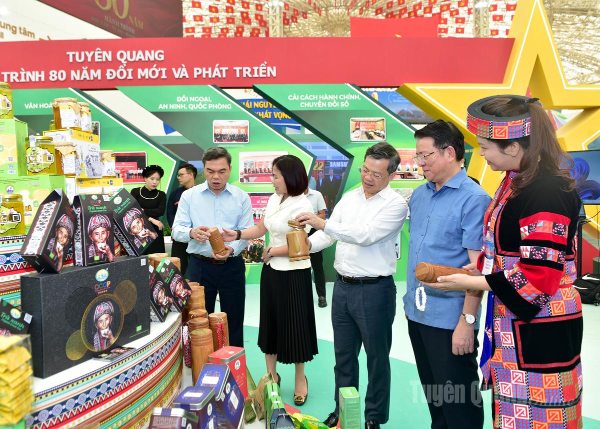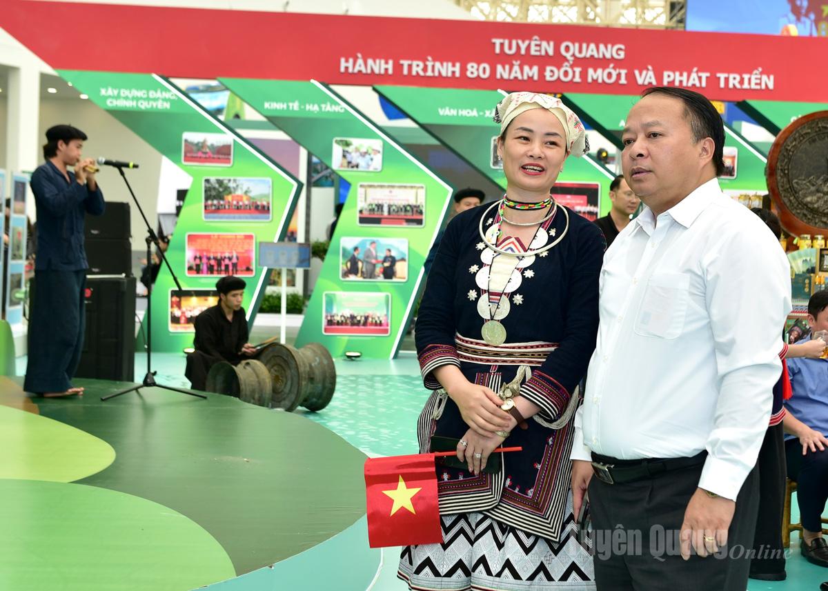 Tỉnh Tuyên Quang tham gia triển lãm với chủ đề "Tuyên Quang hành trình 80 năm đổi mới và phát triển", được bố cục thành 5 khu vực chính, giới thiệu toàn diện về truyền thống lịch sử, cách mạng, thành tựu đổi mới và tiềm năng phát triển của tỉnh gồm: Tuyên Quang - Đất và Người (Khái quát lịch sử hình thành, điều kiện tự nhiên, xã hội, những di chỉ khảo cổ và dấu ấn văn hóa qua các thời kỳ); Tuyên Quang - Cội nguồn cách mạng (Tái hiện vai trò của tỉnh là Thủ đô Khu giải phóng, Thủ đô Kháng chiến; nơi diễn ra Quốc dân Đại hội Tân Trào, hoạt động của Bác Hồ và Trung ương Đảng; ký ức hào hùng trong bảo vệ biên giới); Tuyên Quang - Hành trình 80 năm đổi mới và phát triển (Giới thiệu thành tựu toàn diện về chính trị, kinh tế, văn hóa, xã hội, giáo dục, y tế, hạ tầng, chuyển đổi số, xây dựng Nông thôn mới); Tuyên Quang - Vững bước tương lai (Thể hiện khát vọng phát triển trong kỷ nguyên số, định hướng quy hoạch đến năm 2030, tầm nhìn 2045, với các dự án trọng điểm và thành phố thông minh); Bản sắc văn hóa, du lịch Tuyên Quang (Trưng bày di sản văn hóa, lễ hội, không gian văn hóa dân tộc, sản phẩm OCOP, ẩm thực đặc sắc, tiềm năng và cơ hội phát triển du lịch). Bên cạnh đó, còn có Khu vực bổ trợ trưng bày giới thiệu sản phẩm trà, hoạt động pha trà, thưởng trà; trải nghiệm văn hóa gắn với văn nghệ, trò chơi dân gian, làng nghề truyền thống; trưng bày sản phẩm OCOP, không gian check-in mô phỏng danh thắng tiêu biểu như Cột cờ Quốc gia Lũng Cú...