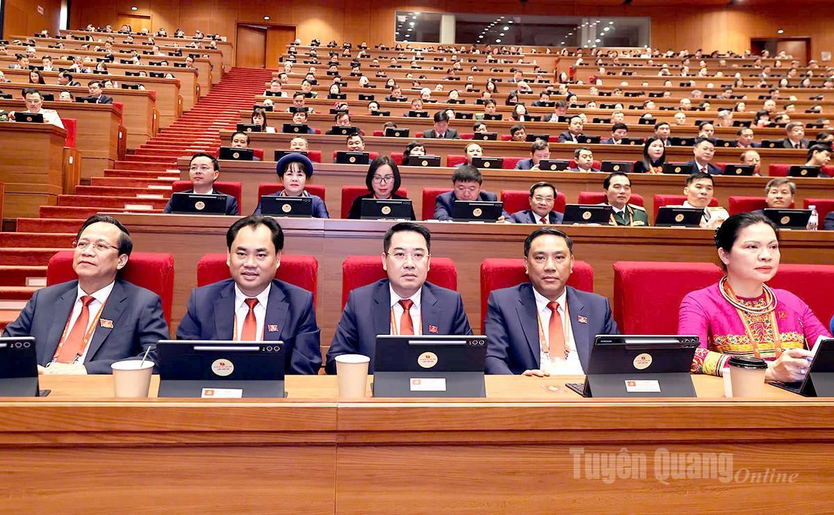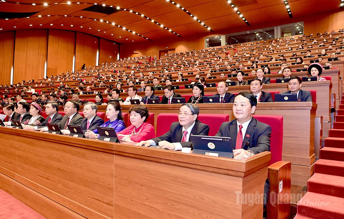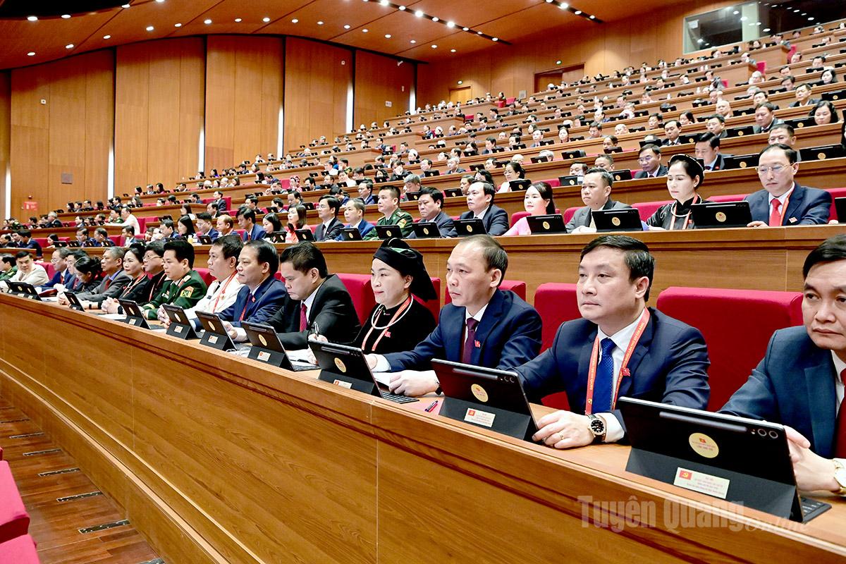 Đoàn đại biểu tỉnh Tuyên Quang tham dự phiên khai mạc có các đồng chí: Hầu A Lềnh, Ủy viên Ban chấp hành Trung ương Đảng, Bí thư Tỉnh ủy; Lê Thị Kim Dung, Phó Bí thư Thường trực Tỉnh ủy; Nguyễn Văn Sơn, Phó Bí thư Tỉnh ủy, Chủ tịch HĐND tỉnh; Phan Huy Ngọc, Phó Bí thư Tỉnh ủy, Chủ tịch UBND tỉnh; Ma Thế Hồng, Phó Bí thư Tỉnh ủy, Chủ tịch Ủy ban MTTQ tỉnh; các đồng chí trong Ban Thường vụ Tỉnh ủy và các đại biểu chính thức dự Đại hội.