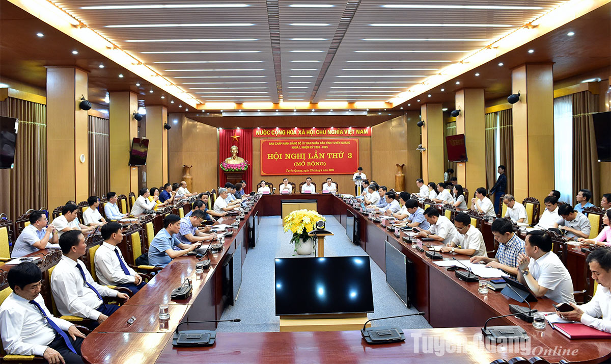 Quang cảnh hội nghị BCH Đảng bộ UBND tỉnh lần thứ 3.