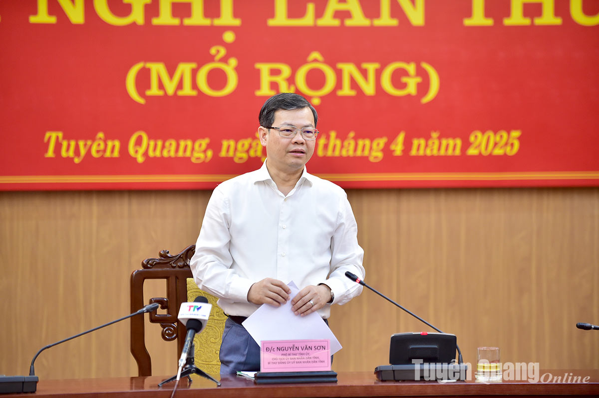 Đồng chí Nguyễn Văn Sơn, Bí thư Đảng ủy, Chủ tịch UBND tỉnh phát biểu tại hội nghị.