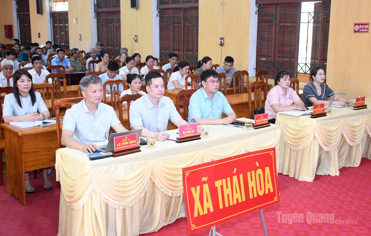 | Các đại biểu dự tại điểm cầu xã Thái Bình, tỉnh Tuyên Quang. Ảnh: Minh Thủy |
