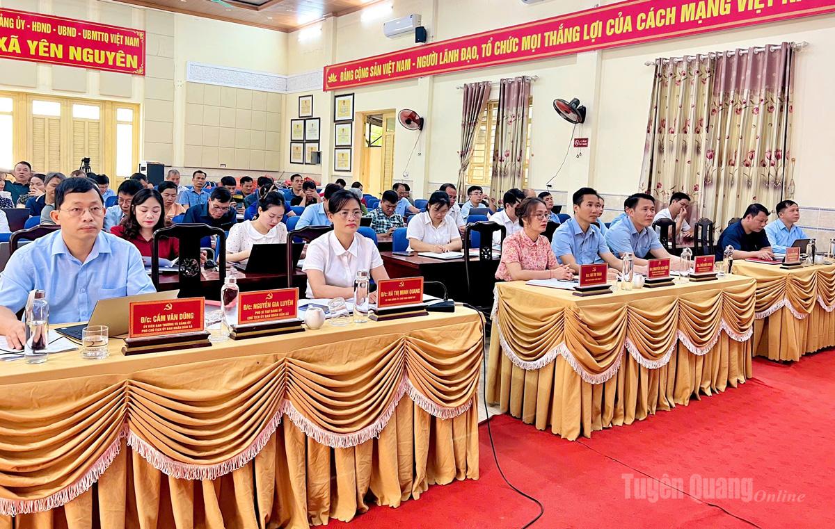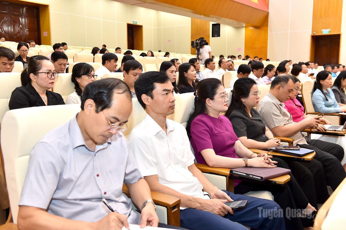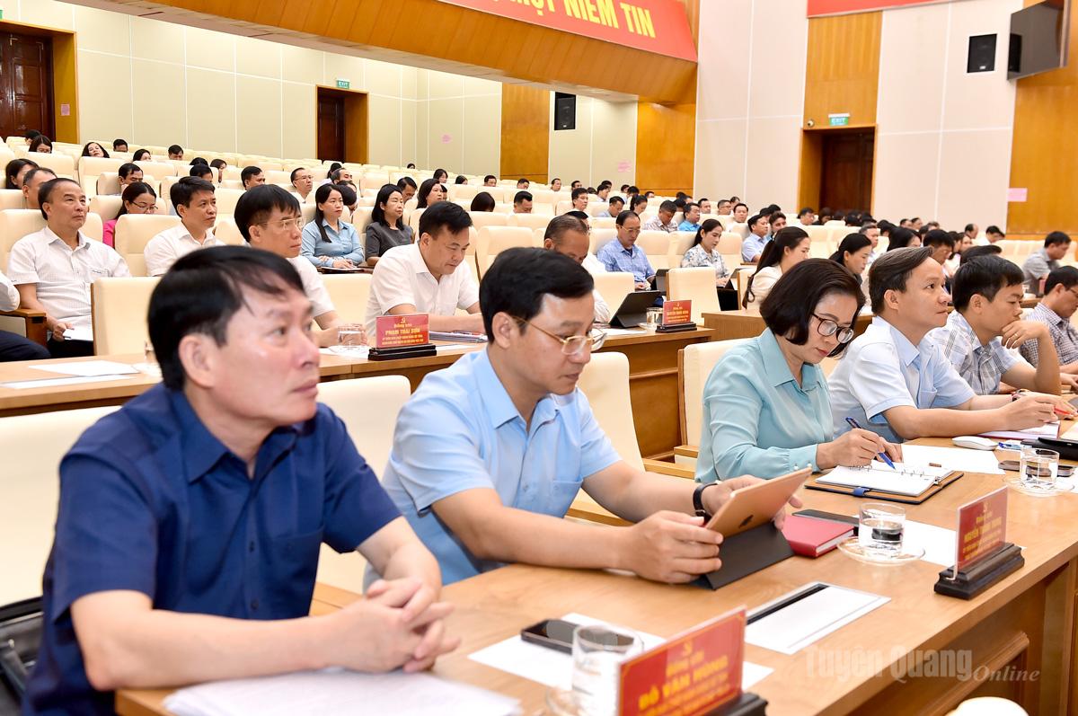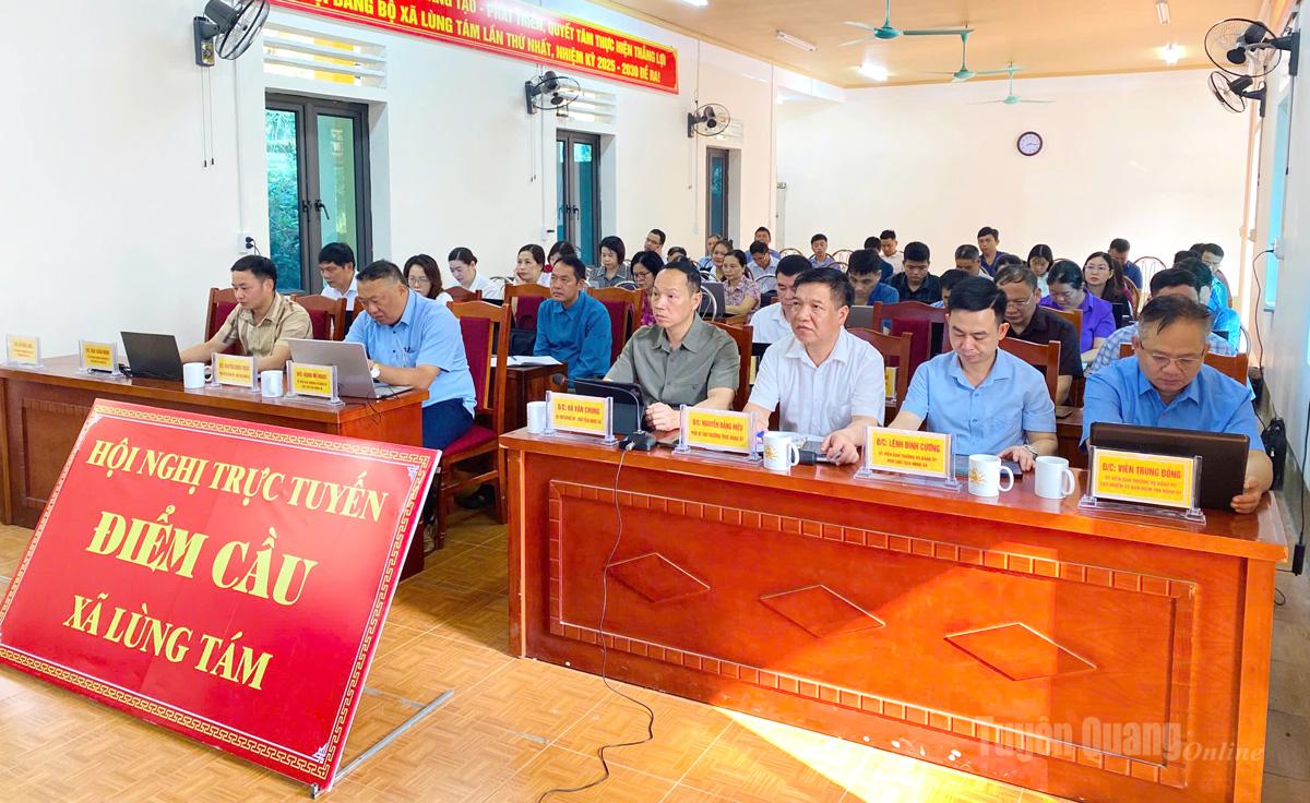 Tại điểm cầu tỉnh Tuyên Quang, dự hội nghị tại Trung tâm Hội nghị tỉnh có các đồng chí: Hầu A Lềnh, Ủy viên Ban Chấp hành Trung ương Đảng, Bí thư Tỉnh ủy; Lê Thị Kim Dung, Phó Bí thư Thường trực Tỉnh ủy, Trưởng Đoàn đại biểu Quốc hội khóa XVI tỉnh Tuyên Quang; Nguyễn Văn Sơn, Phó Bí thư Tỉnh ủy, Chủ tịch HĐND tỉnh; Phan Huy Ngọc, Phó Bí thư Tỉnh ủy, Chủ tịch UBND tỉnh; Ma Thế Hồng, Phó Bí thư Tỉnh ủy, Chủ tịch Ủy ban MTTQ tỉnh; các đồng chí Ủy viên Ban Thường vụ Tỉnh ủy, Ủy viên Ban Chấp hành Đảng bộ tỉnh; thường trực HĐND, lãnh đạo UBND, Ủy ban MTTQ tỉnh, các sở, ban, ngành và lãnh đạo các xã, phường. Hội nghị được kết nối trực tuyến tới điểm cầu tại các cơ quan, đơn vị và các xã, phường trên địa bàn tỉnh.