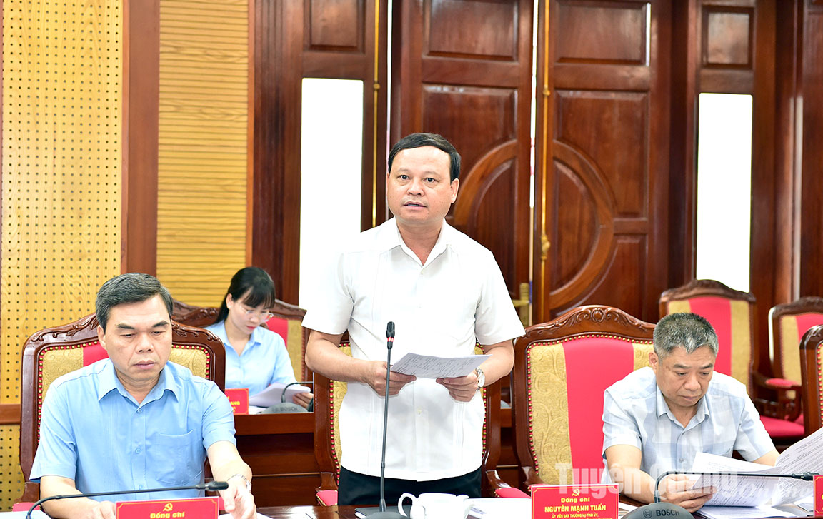Đồng chí Nguyễn Mạnh Tuấn, Phó Chủ tịch Thường trực UBND tỉnh báo cáo tác chuẩn bị hợp nhất hai tỉnh Tuyên Quang và Hà Giang.
