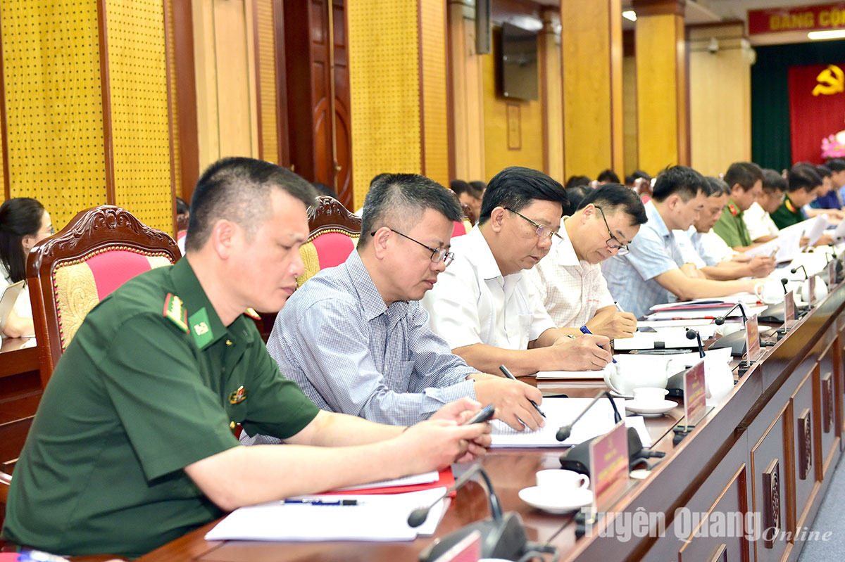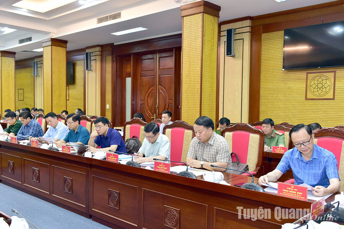 Các đồng chí lãnh đạo tỉnh Tuyên Quang tại cuộc họp.