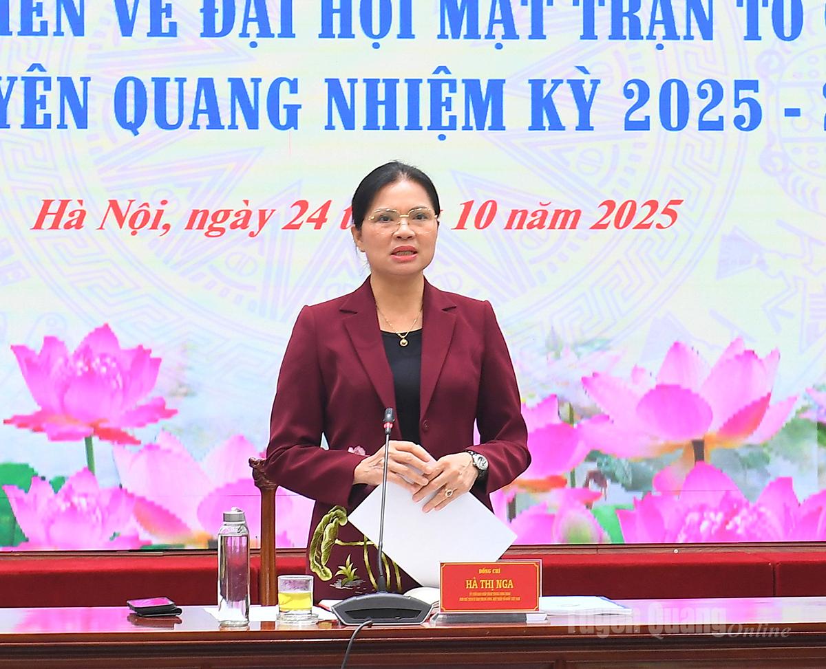 Đồng chí Phó Chủ tịch Ủy ban Trung ương MTTQ Việt Nam Hà Thị Nga đánh giá cao tỉnh Tuyên Quang, Ủy ban MTTQ Việt Nam tỉnh Tuyên Quang đã chuẩn bị chu đáo, đầy đủ các điều kiện để tổ chức Đại hội. Đồng chí nhấn mạnh, báo cáo chính trị của Đại hội cần phải làm nổi bật được những kết quả đã đạt được, khẳng định vai trò của MTTQ trong xây dựng và góp phần phát huy khối đại đoàn kết toàn dân tộc, sức mạnh trong thời đại mới.