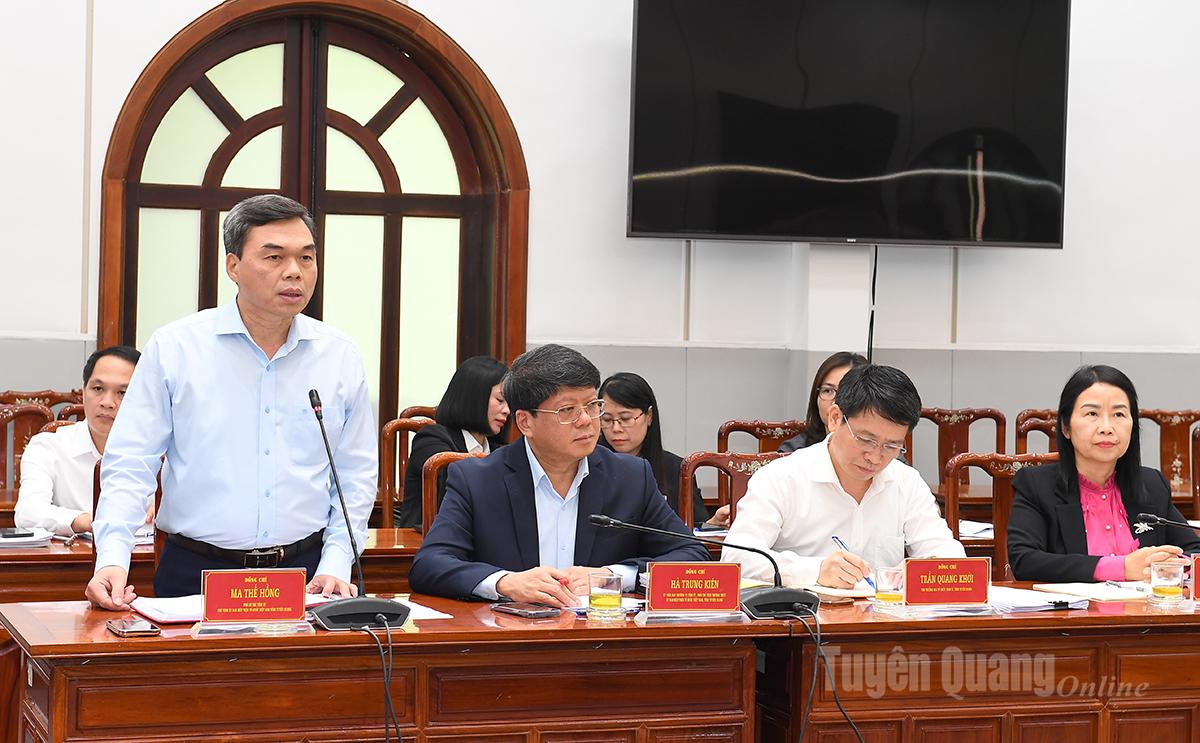 Đồng chí Ma Thế Hồng, Phó Bí thư Tỉnh ủy, Chủ tịch Ủy ban MTTQ Việt Nam tỉnh Tuyên Quang phát biểu tại buổi làm việc.