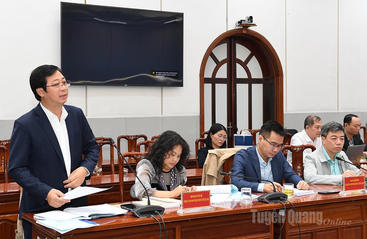 Đồng chí Hà Trung Kiên, Ủy viên Ban Thường vụ Tỉnh ủy, Phó Chủ tịch Thường trực Ủy ban MTTQ Việt Nam tỉnh Tuyên Quang trình bày dự thảo báo cáo chính trị Đại hội đại biểu Ủy ban MTTQ Việt Nam tỉnh.