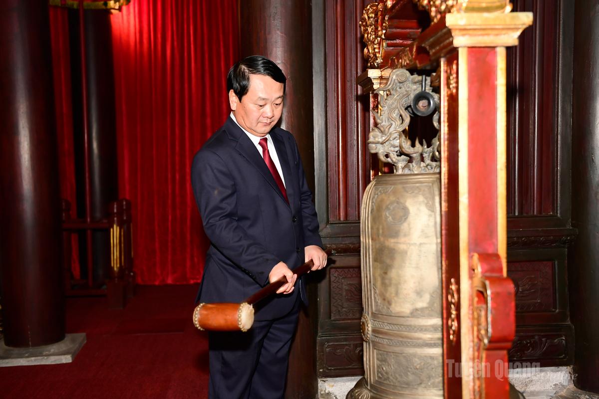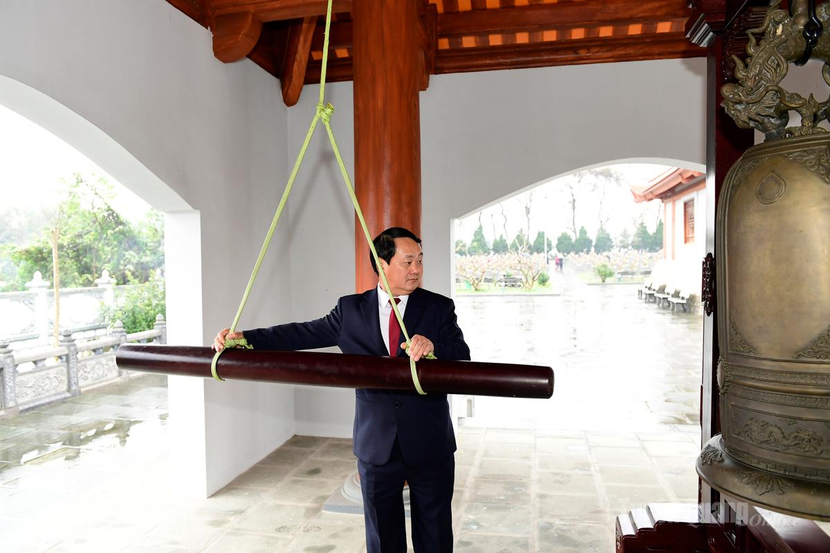 Đồng chí Bí thư Tỉnh ủy Hầu A Lềnh thỉnh chuông khai lễ tại Nghĩa trang Liệt sĩ tỉnh.