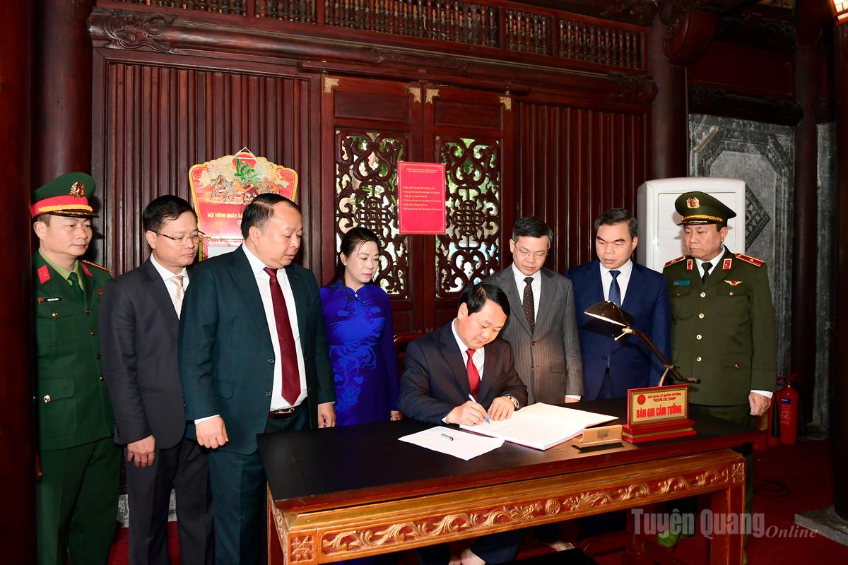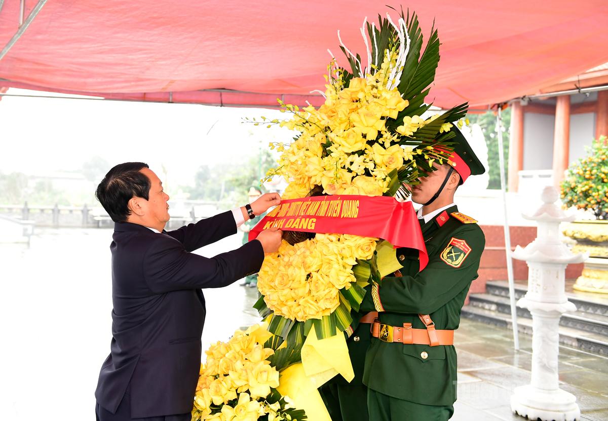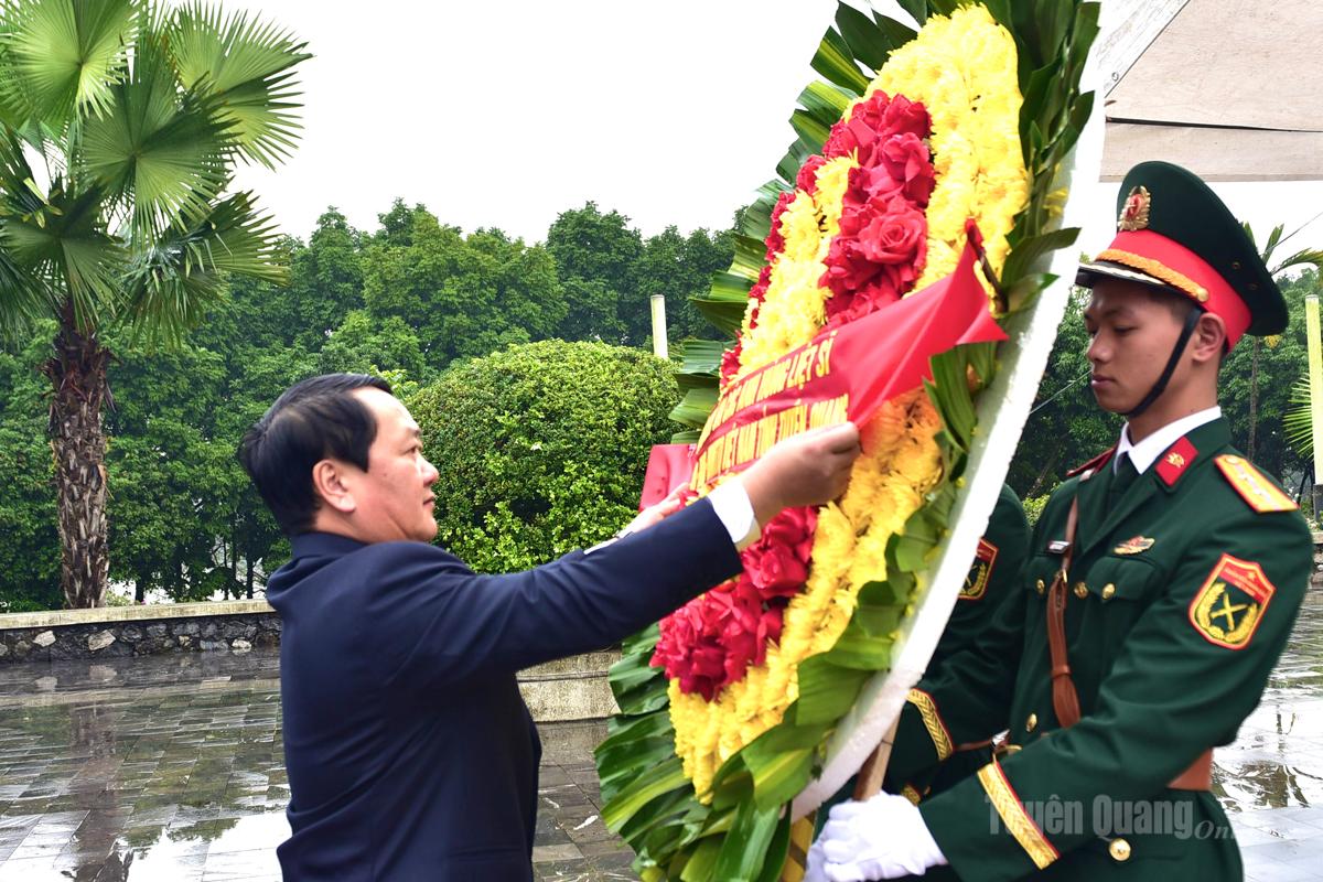 Đoàn đại biểu Tỉnh ủy, HĐND, UBND, Ủy ban MTTQ, Đoàn ĐBQH tỉnh Tuyên Quang do đồng chí Hầu A Lềnh, Ủy viên BCH Trung ương Đảng, Bí thư Tỉnh ủy làm Trưởng đoàn dâng hương tại Đài tưởng niệm các Anh hùng liệt sĩ. Ảnh: Lý Thịnh.