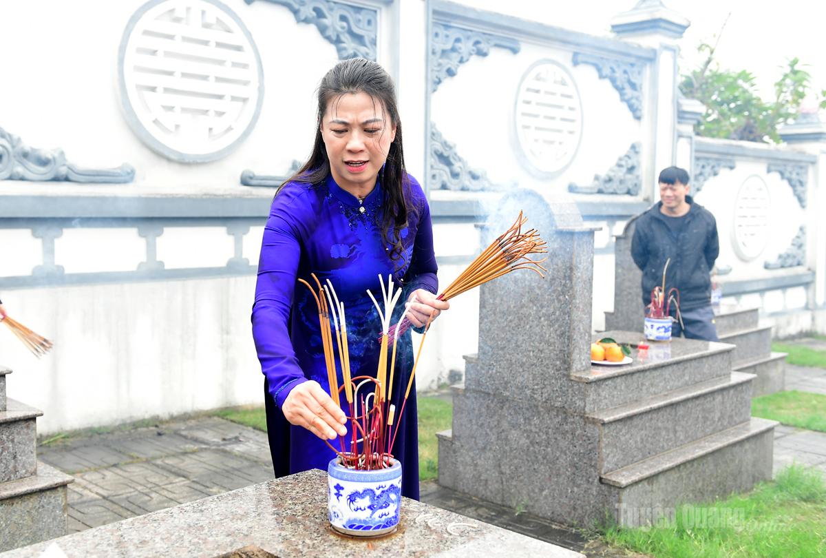 Đồng chí Phó Bí thư Thường trực Tỉnh ủy Lê Thị Kim Dung thắp hương tại các phần mộ Liệt sĩ.