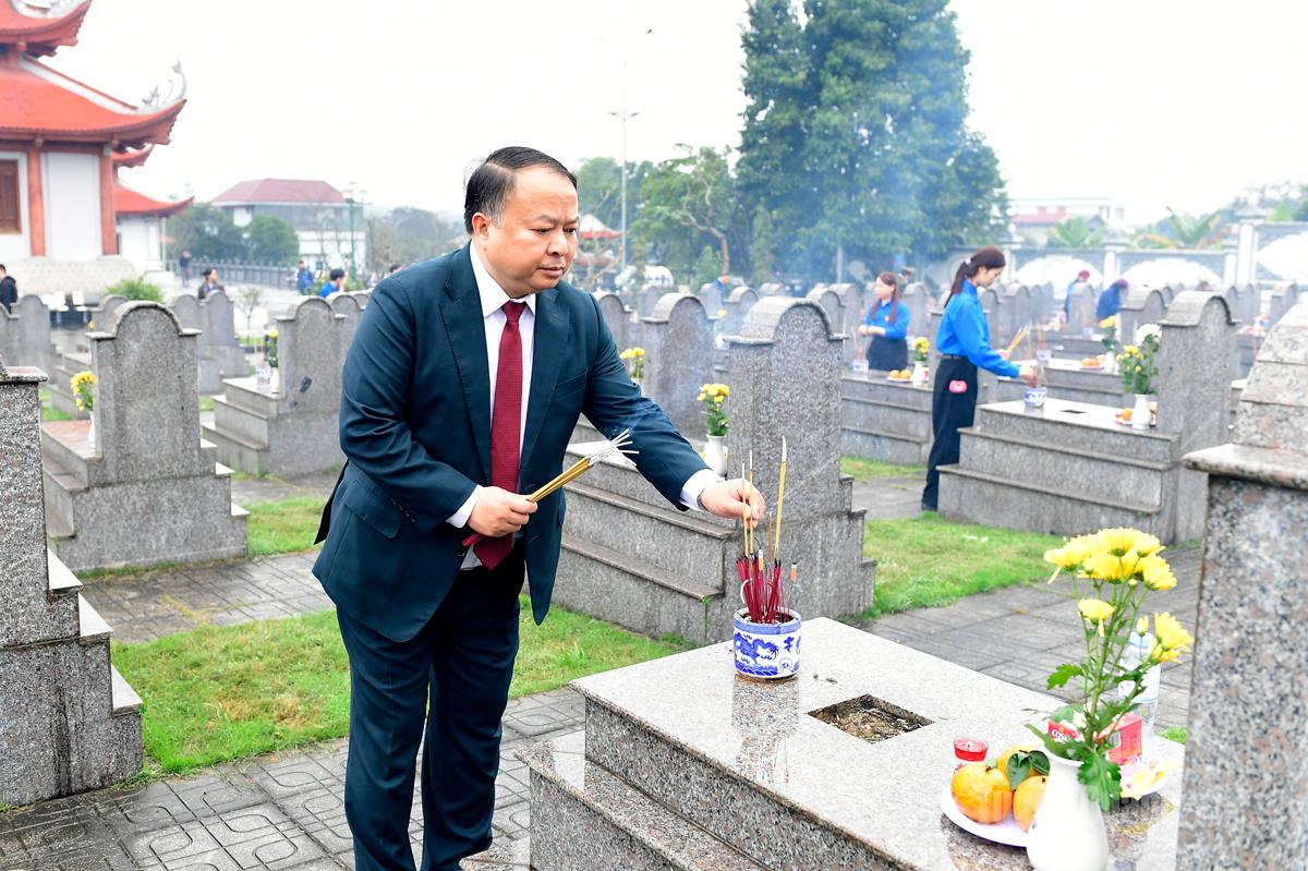 Đồng chí Phó Bí thư Tỉnh ủy, Chủ tịch UBND tỉnh Phan Huy Ngọc thắp hương tại các phần mộ Liệt sĩ.