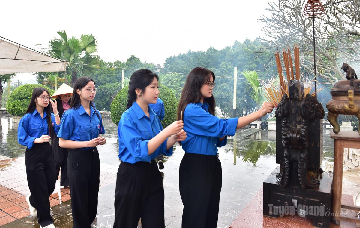 Đoàn viên thanh niên dâng hương tại Đài tưởng niệm các Anh hùng liệt sĩ tỉnh. Ảnh: Lý Thịnh.