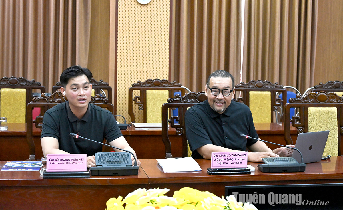 Ông Matsuo Tomoyuki, Chủ tịch Hiệp hội Ẩm thực Nhật Bản - Việt Nam cảm ơn sự đón tiếp, làm việc thịnh tình của lãnh đạo UBND tỉnh Tuyên Quang. Ông khẳng định, cây tam giác mạch ở các tỉnh khu vực các tỉnh phía Bắc Việt Nam rất có giá trị. Hiện nhu cầu nhập khẩu hạt tam giác mạch thô của Việt Nam để làm mì Soba tại Nhật Bản là rất lớn. Hiệp hội Ẩm thực Nhật Bản - Việt Nam mong muốn sẽ có sự trao đổi, mở rộng trồng cây tam giác mạch với các tỉnh phía Bắc, trong đó có tỉnh Tuyên Quang để tăng sản lượng xuất khẩu. Cùng với đó là cơ chế hỗ trợ, phối hợp triển khai thực hiện dự án.