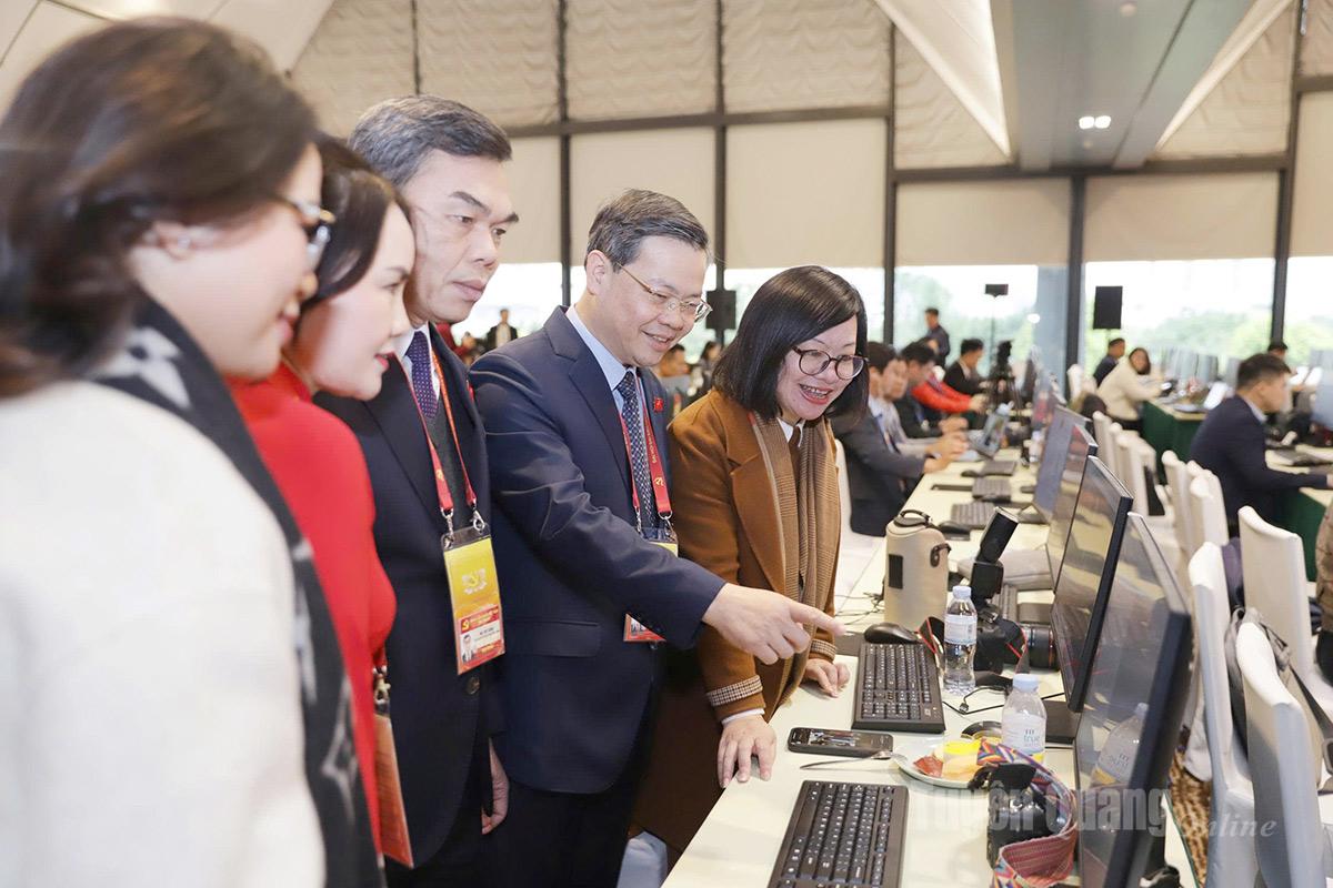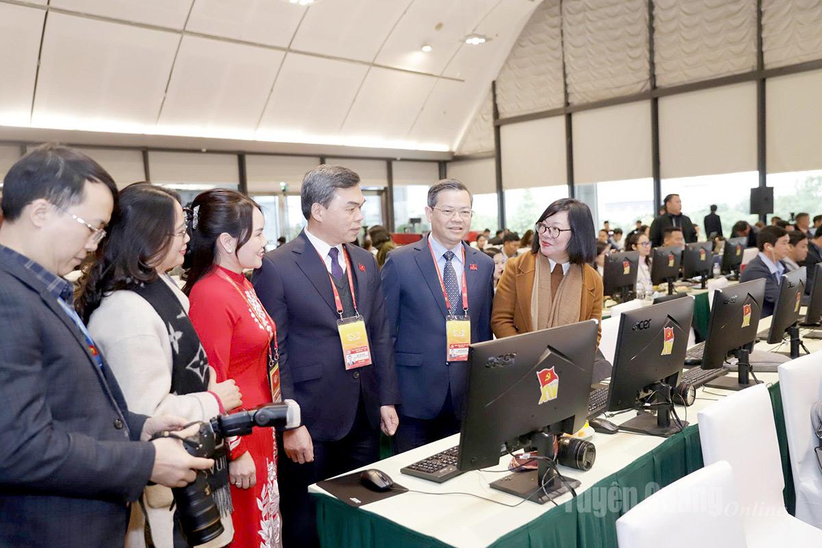 Các đồng chí lãnh đạo tỉnh tới thăm, động viên nhóm phóng viên Báo và phát thanh, truyền hình Tuyên Quang tác nghiệp tại Đại hội.