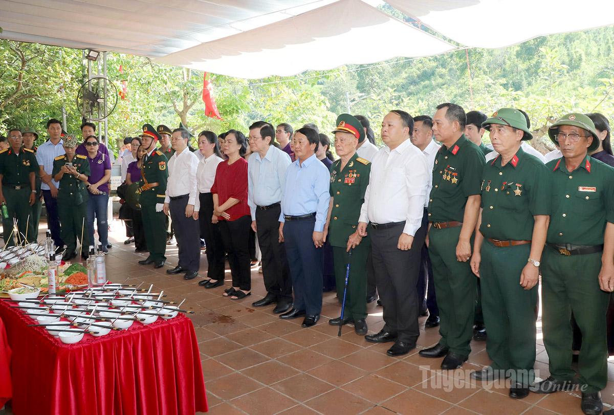 Với lòng thành kính, biết ơn vô hạn, Nguyên Chủ tịch nước Trương Tấn Sang và phu nhân cùng các đồng chí lãnh đạo tỉnh đã dâng hoa, thắp hương tri ân các Anh hùng liệt sĩ mặt trận Vị Xuyên tại Đền thờ Liệt sĩ điểm cao 468 thuộc thôn Nặm Ngặt, xã Thanh Thủy.