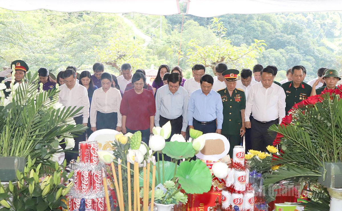 Nguyên Chủ tịch nước Trương Tấn Sang và phu nhân cùng các đồng chí lãnh đạo tỉnh dành phút mặc niệm tưởng nhớ các Anh hùng Liệt sĩ tại Đền thờ Liệt sĩ điểm cao 468.