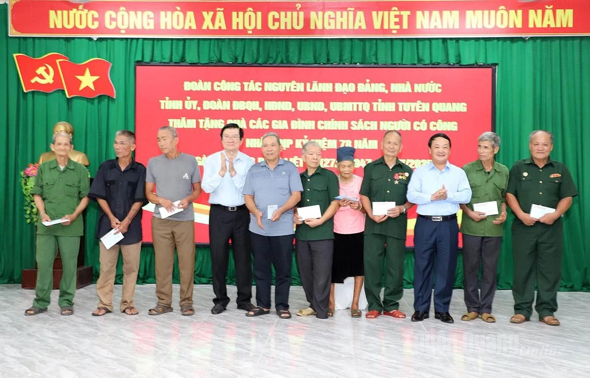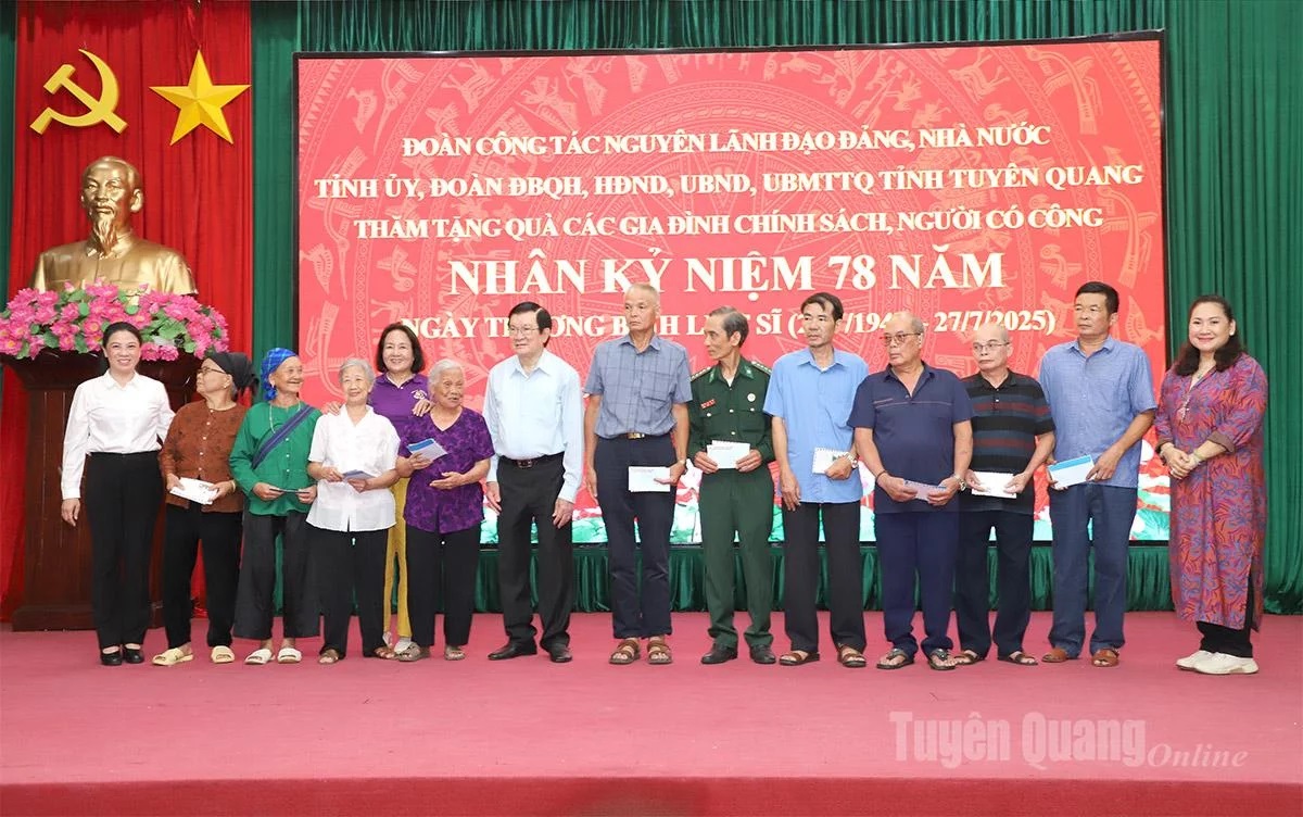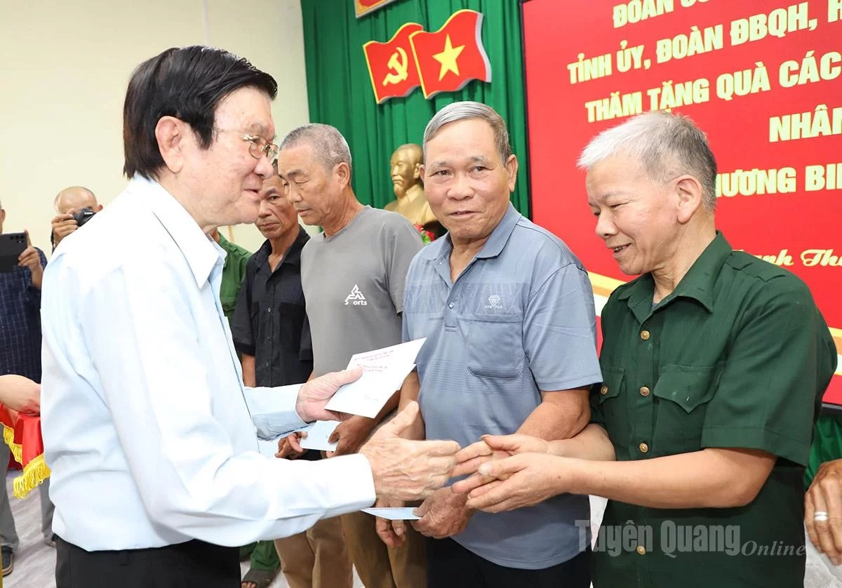 Để ghi nhận, tri ân công lao đóng góp cho sự nghiệp đấu tranh bảo vệ và xây dựng, phát triển đất nước, nguyên Chủ tịch nước Trương Tấn Sang và phu nhân cùng các đồng chí lãnh đạo tỉnh đã tặng quà cho các gia đình chính sách, người có công tại xã Thanh Thủy, phường Hà Giang 1, xã Ngọc Đường và xã Tùng Bá.