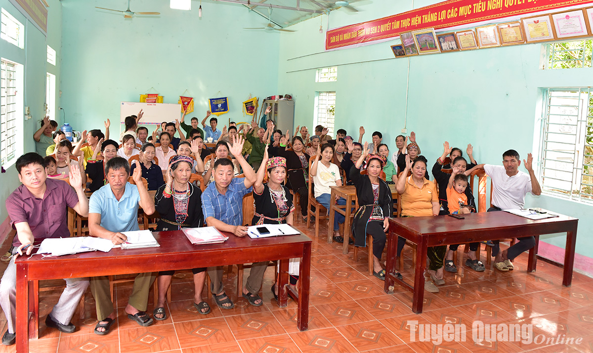 Đông đảo cử tri thôn Ao Sen 2, xã Đức Ninh (Hàm Yên) biểu quyết đồng thuận rất cao với chủ trương hợp nhất đơn vị cấp tỉnh, sắp xếp đơn vị cấp xã.