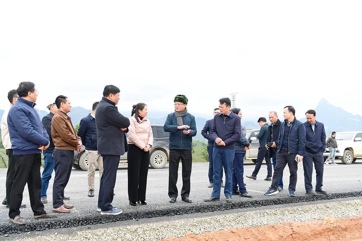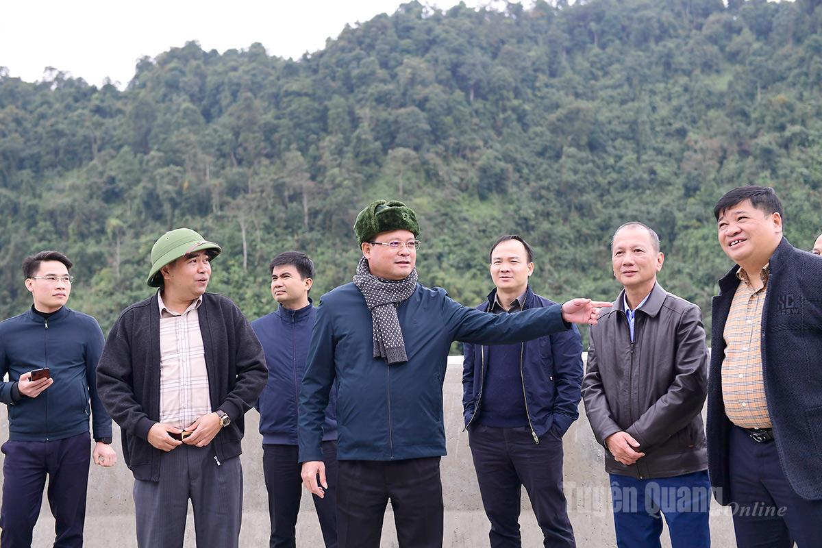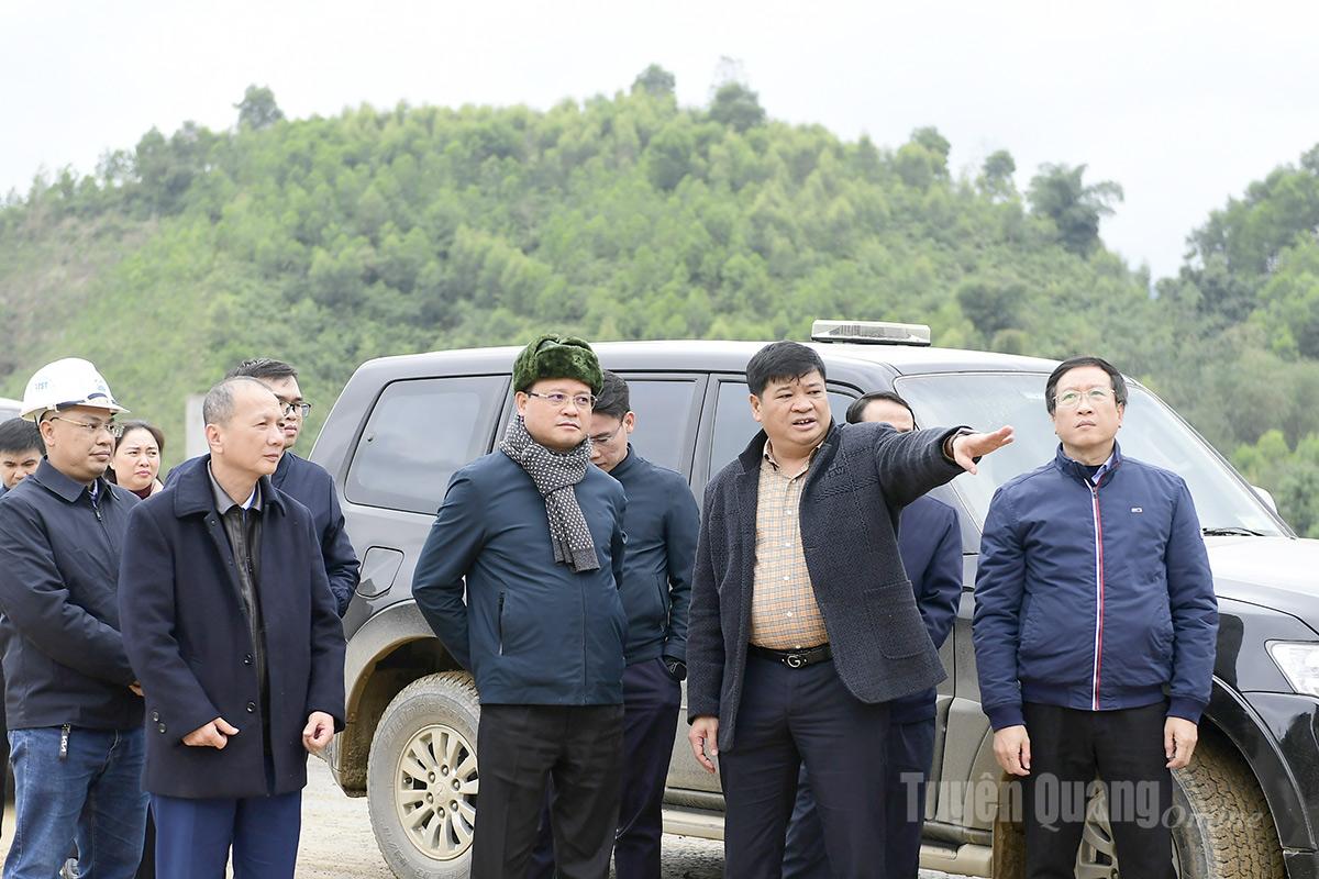 Đồng chí Phó Chủ tịch Thường trực UBND tỉnh Nguyễn Mạnh Tuấn kiểm tra thực hiện đường cao tốc Tuyên Quang - Hà Giang đoạn qua xã Hùng An.