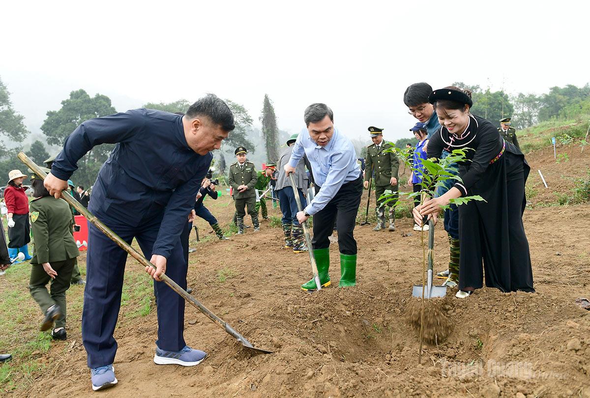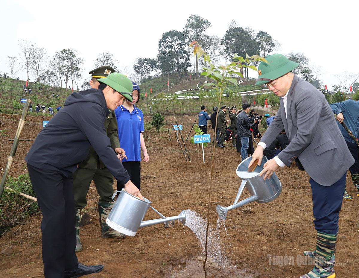 Ngay sau lễ phát động, các đồng chí lãnh đạo tỉnh và đại biểu đã tham gia trồng cây tại khu vực “Vườn cây ơn Bác”, thôn Tân Lập, xã Tân Trào.