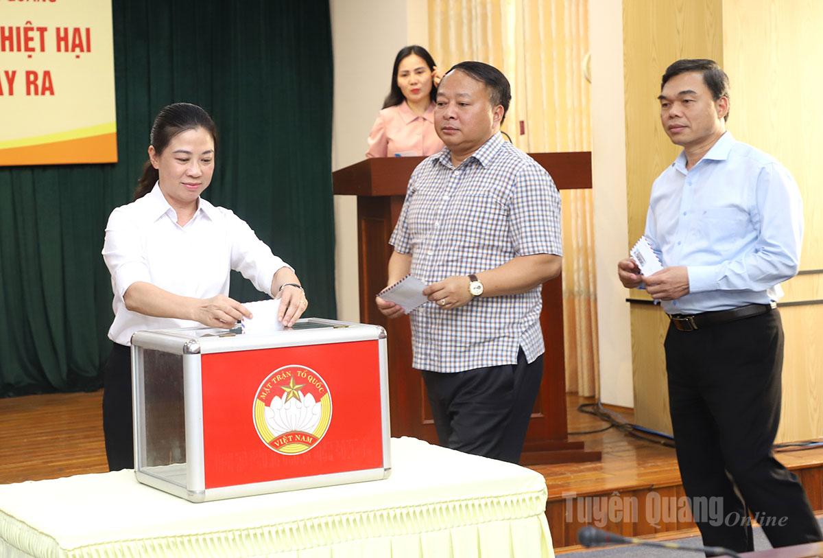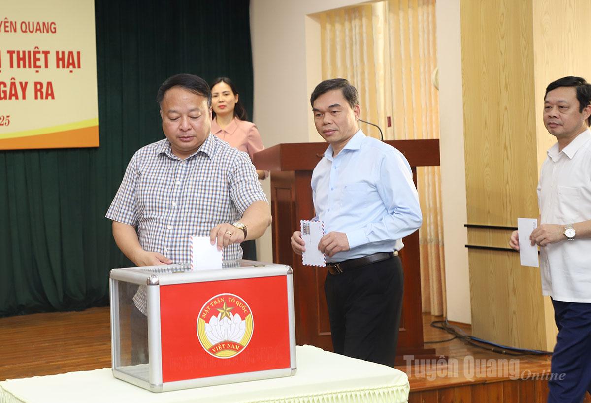 Với tinh thần “nhường cơm sẻ áo”, người có của góp của, người có công góp công, có ít góp ít, có nhiều góp nhiều, Ủy ban MTTQ Việt Nam tỉnh tiếp tục kêu gọi các cơ quan, đơn vị, tổ chức, doanh nghiệp, cán bộ, chiến sĩ, công chức, viên chức, người lao động, nhà hảo tâm, Nhân dân trong và ngoài tỉnh ủng hộ về Ban vận động cứu trợ tỉnh Tuyên Quang. Số tài khoản: 8606966999, tại Ngân hàng TMCP Đầu tư và Phát triển Việt Nam - Chi nhánh Tuyên Quang. Tên tài khoản: Ủy ban MTTQ tỉnh Tuyên Quang.