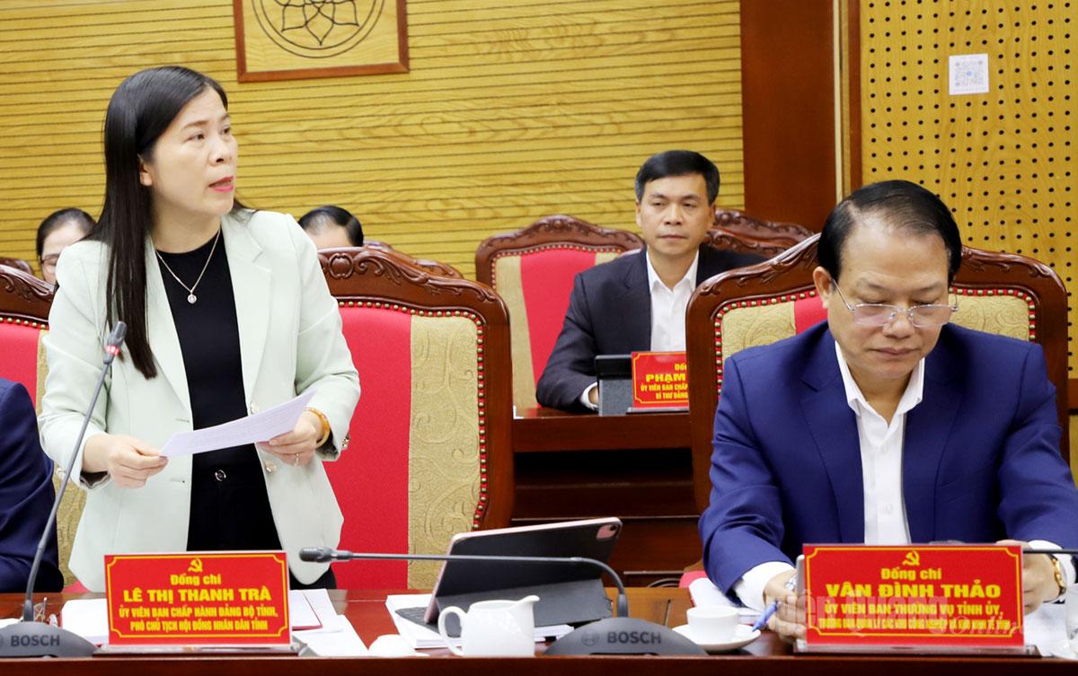 Phó Chủ tịch HĐND tỉnh Lê Thị Thanh Trà thảo luận tại phiên họp.