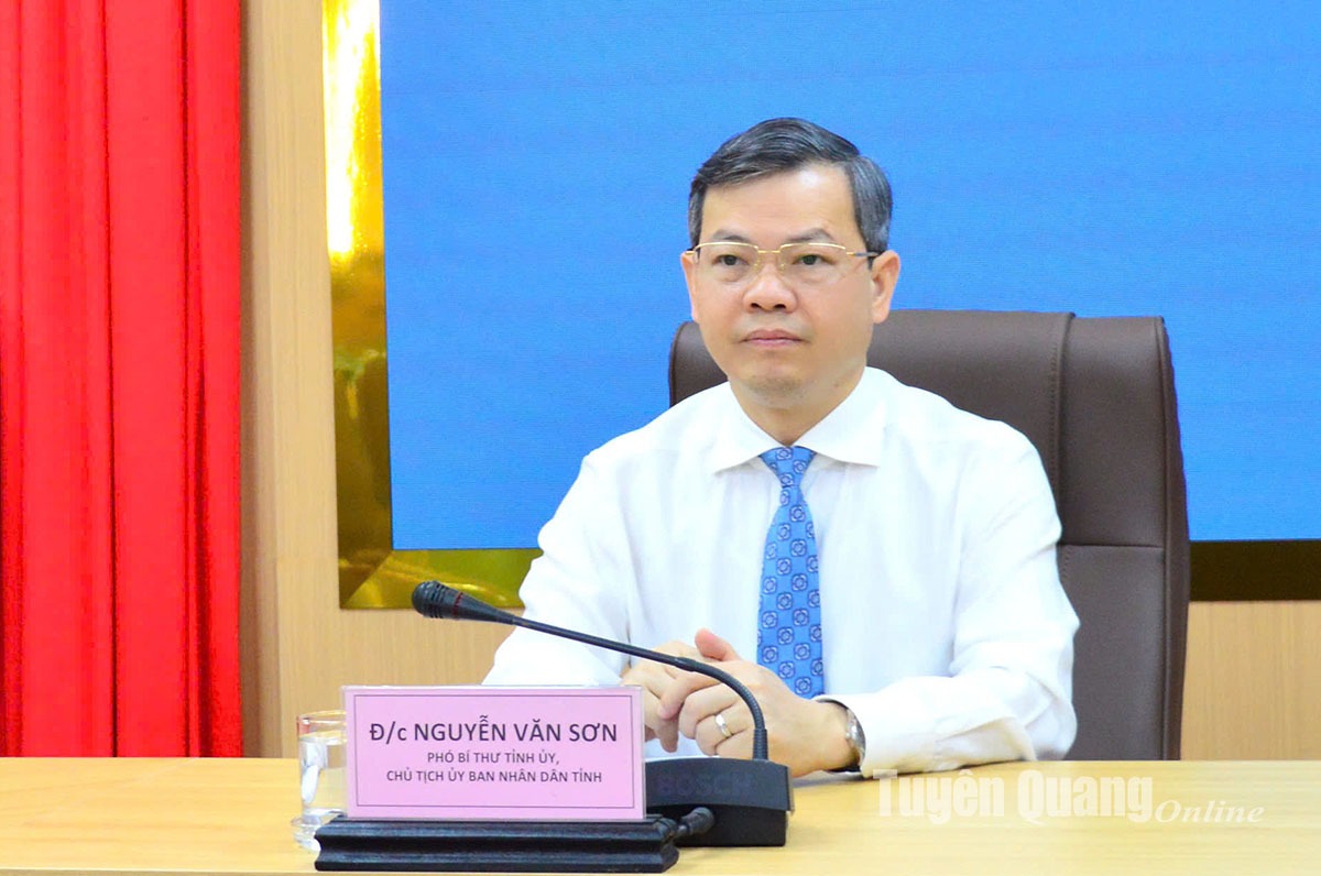 Chủ tịch UBND tỉnh Nguyễn Văn Sơn chủ trì tại điểm cầu tỉnhTuyên Quang.