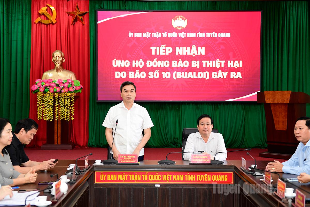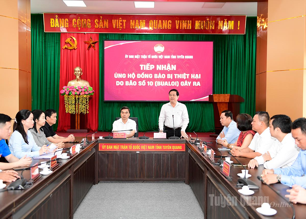 Tại buổi tiếp nhận, lãnh đạo Ủy ban MTTQ Việt Nam tỉnh Tuyên Quang đã thông tin nhanh tình hình thiệt hại, công tác hỗ trợ, khắc phục thiệt hại do cơn bão số 10 gây ra. Theo đó, trên địa bàn tỉnh có 7 người bị chết, 1 người mất tích, 99 người bị thương; 24.868 nhà ở bị ảnh hưởng, thiệt hại; hàng ngàn ha lúa, rau màu và vật nuôi bị thiệt hại, 84 điểm trường học, 25 điểm trạm y tế, bệnh viện, 31 nhà văn hóa bị ảnh hưởng; 62 công trình thủy lợi bị hư hỏng; 16.650m kênh mương, 10.500m kè bờ sông, bờ suối và rất nhiều công trình nước sạch, đường giao thông bị thiệt hại.