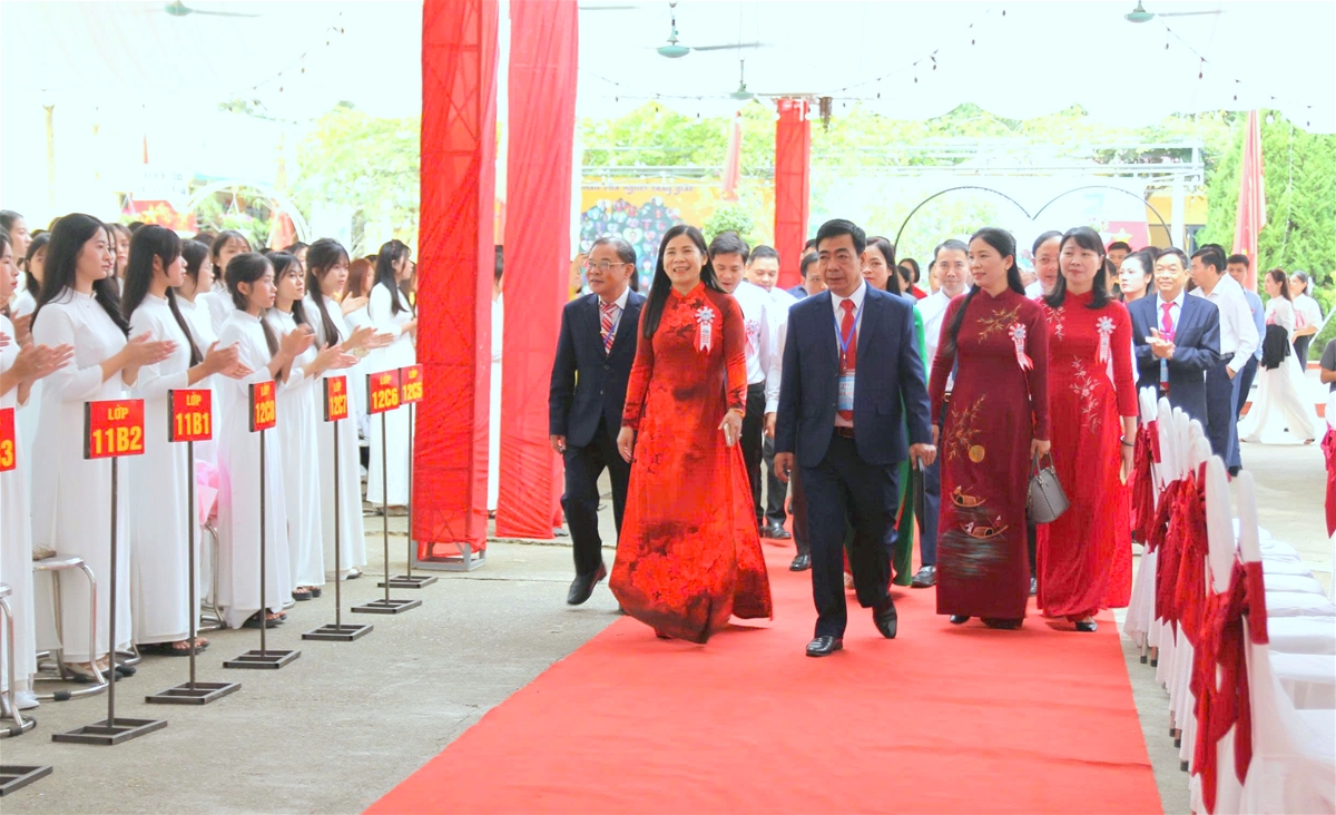 Cùng dự có các đại diện lãnh đạo Sở Giáo dục và Đào tạo, Ban Văn hóa - Xã hội HĐND tỉnh, các xã trong khu vực, các cơ quan, đơn vị và các thế hệ cán bộ quản lý, giáo viên, nhân viên, học sinh của Trường.