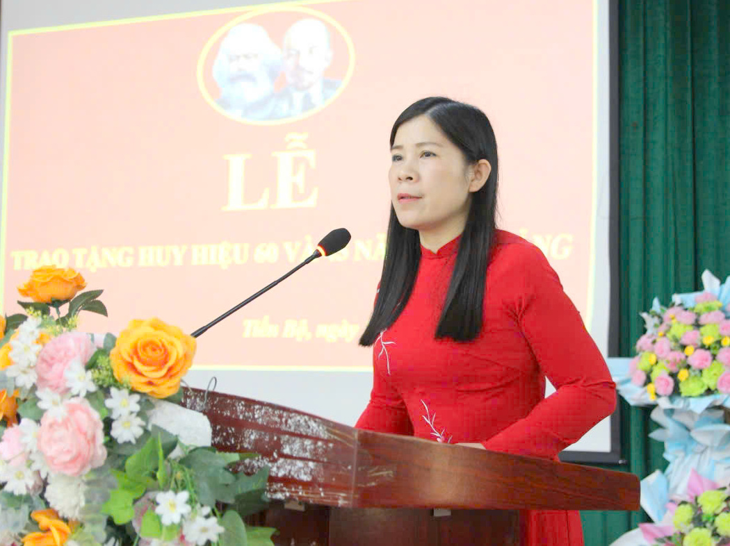 Phát biểu tại Lễ trao tặng Huy hiệu Đảng, đồng chí Lê Thị Thanh Trà, Ủy viên Ban Chấp hành Đảng bộ tỉnh, Phó Chủ tịch Hội đồng nhân dân tỉnh đã chúc mừng các đồng chí đảng viên vinh dự được nhận huy hiệu Đảng - danh hiệu cao quý của Đảng- sự ghi nhận của Đảng, Nhà nước đối với những công lao, đóng góp của các đảng viên lão thành trong sự nghiệp đấu tranh giải phóng dân tộc, xây dựng và bảo vệ Tổ quốc.