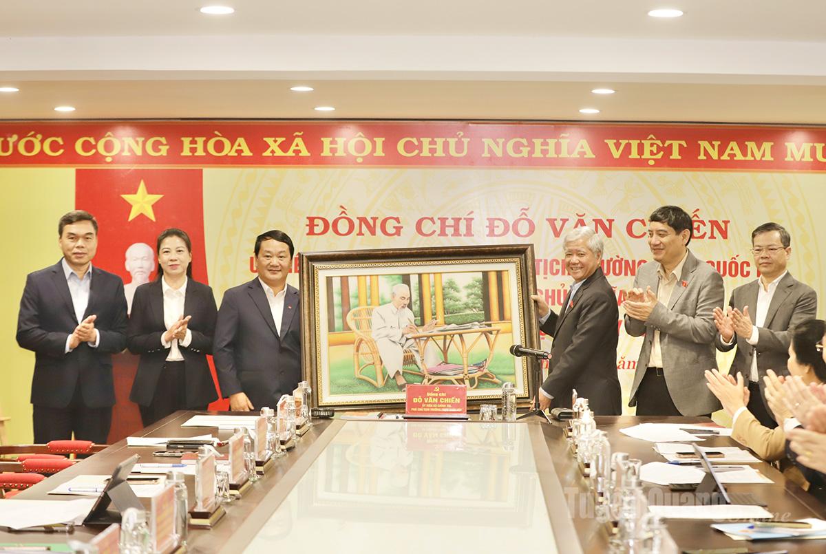 Phó Chủ tịch Thường trực Quốc hội tặng bức tranh Chủ tịch Hồ Chí Minh cho các đồng chí lãnh đạo tỉnh.