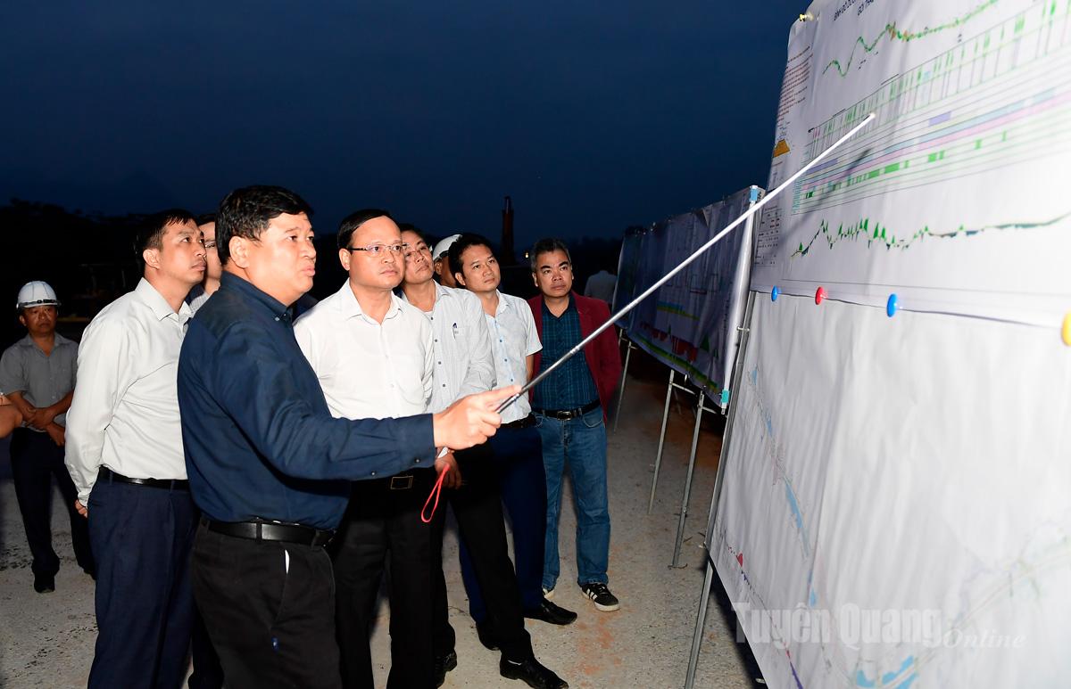 Đồng chí Nguyễn Mạnh Tuấn, Ủy viên Ban Thường vụ Tỉnh ủy, Phó Chủ tịch Thường trực UBND tỉnh kiểm tra gói thầu xây dựng cầu trên tuyến cao tốc Tuyên Quang - Hà Giang.