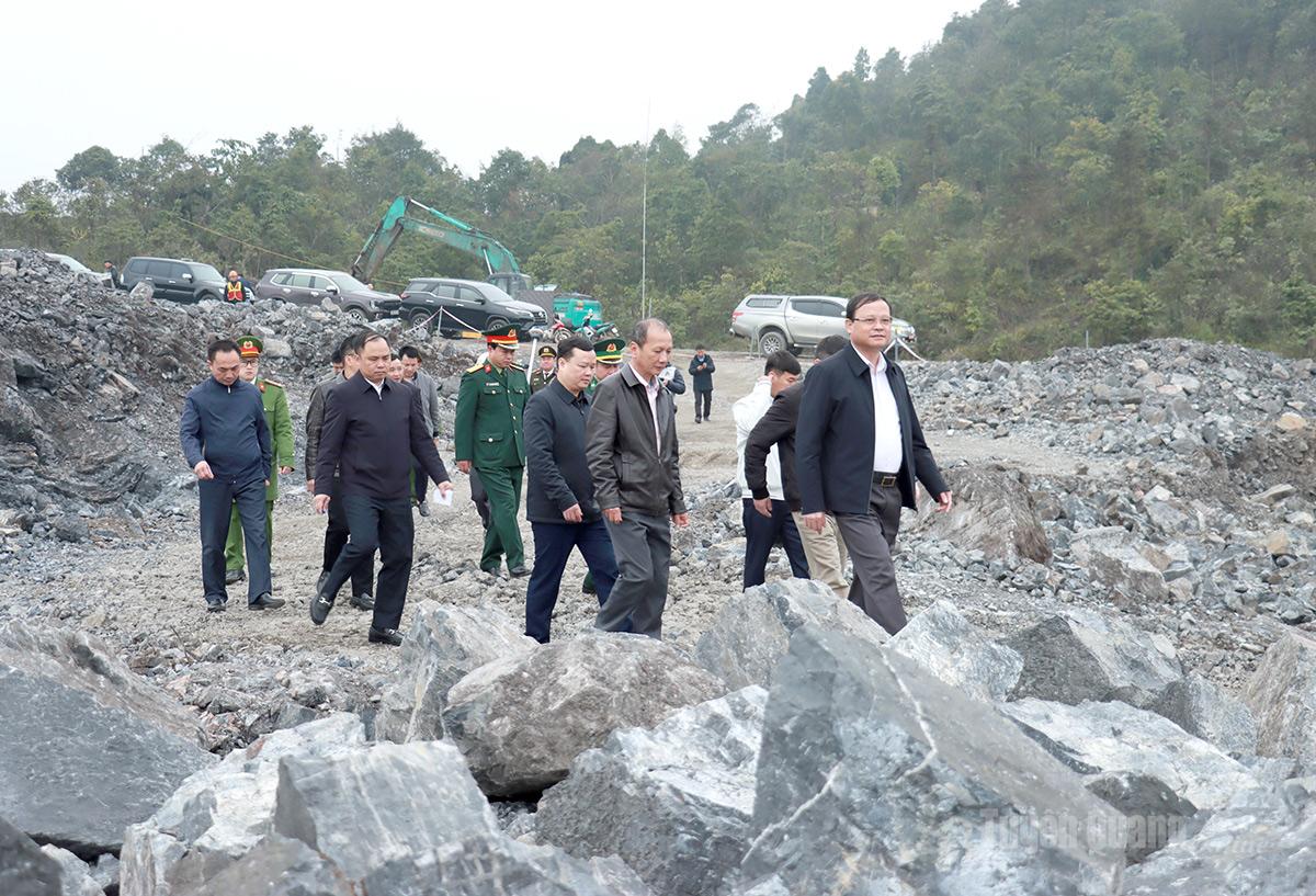 Qua kiểm tra thực tế, Phó Chủ tịch Thường trực UBND tỉnh Nguyễn Mạnh Tuấn ghi nhận, biểu dương chủ đầu tư, nhà thầu và chính quyền xã Sơn Vĩ đã chủ động khắc phục khó khăn về địa hình, thời tiết, tập trung nhân lực, phương tiện triển khai thi công, đặc biệt là công tác giải phóng mặt bằng và tổ chức phá đá, nổ mìn bảo đảm an toàn.
