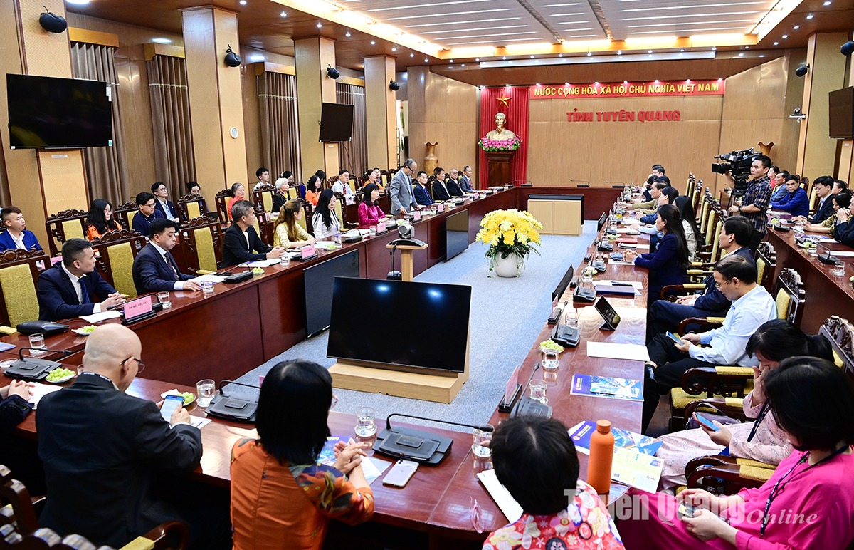 Tại buổi làm việc, đoàn kiều bào đã được xem clip giới thiệu về văn hóa, kinh tế, xã hội của tỉnh Tuyên Quang; trao đổi về khả năng đầu tư tại Tuyên Quang. Nhân dịp này Đoàn kiều bào trao hỗ trợ kinh phí xóa nhà tạm, nhà dột nát cho tỉnh.