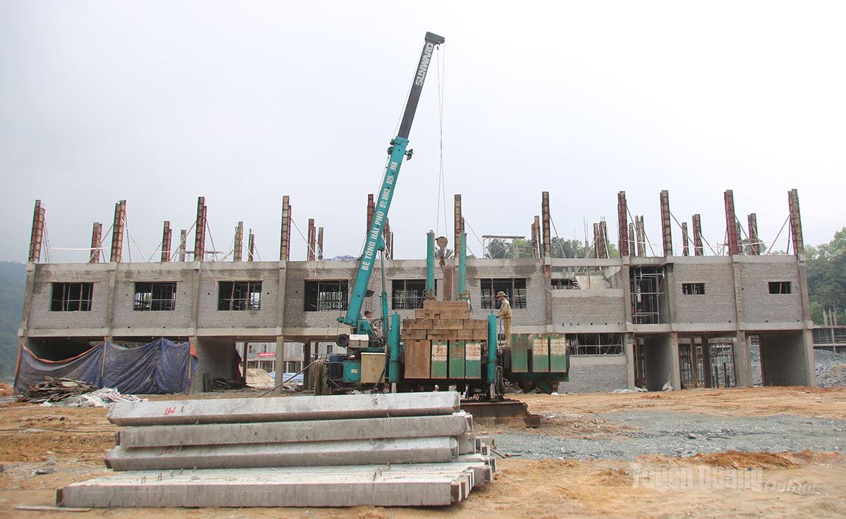 Nhà thầu duy trì các tổ công nhân thi công xuyên Tết tại dự án trường phổ thông nội trú liên cấp xã Thanh Thủy.