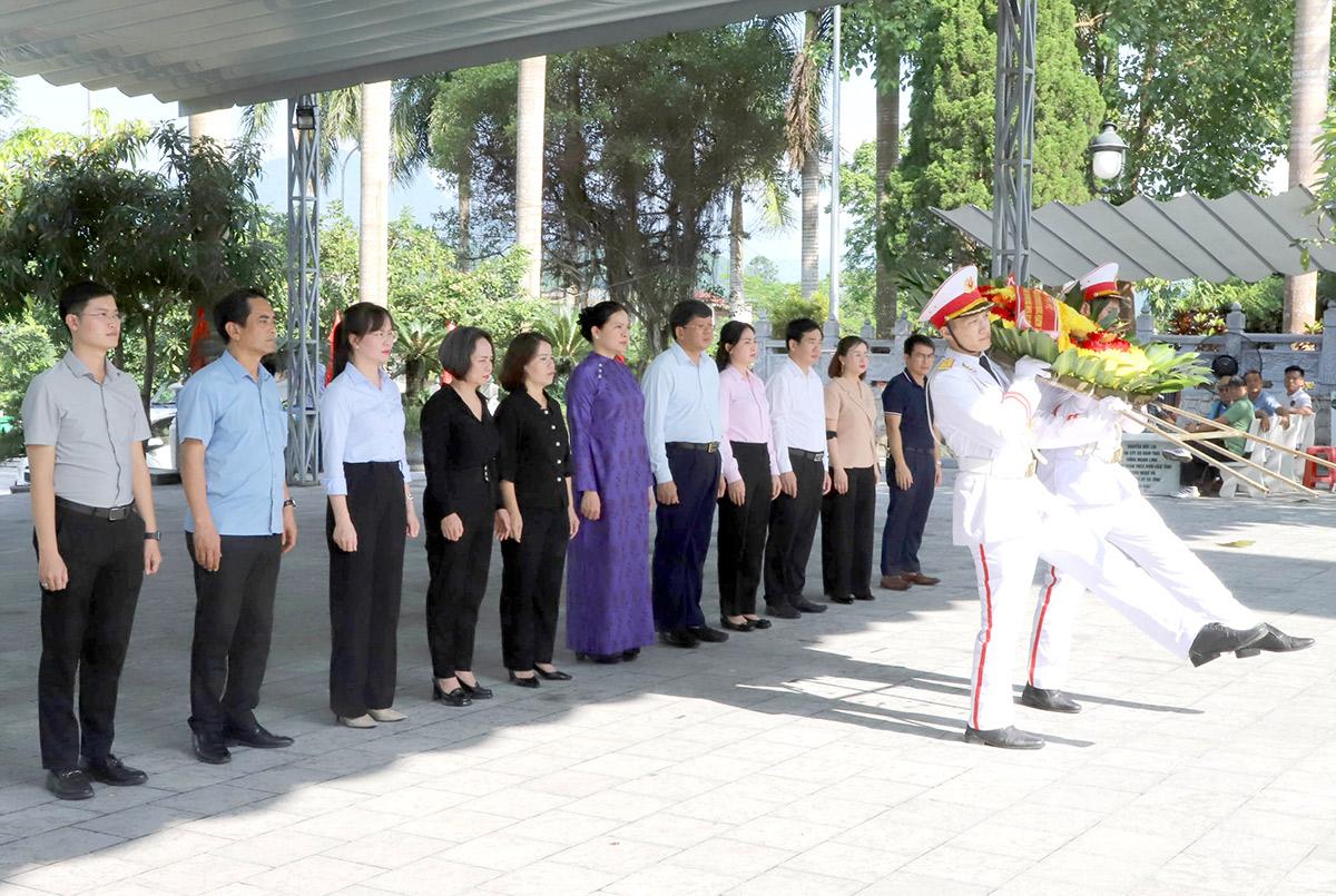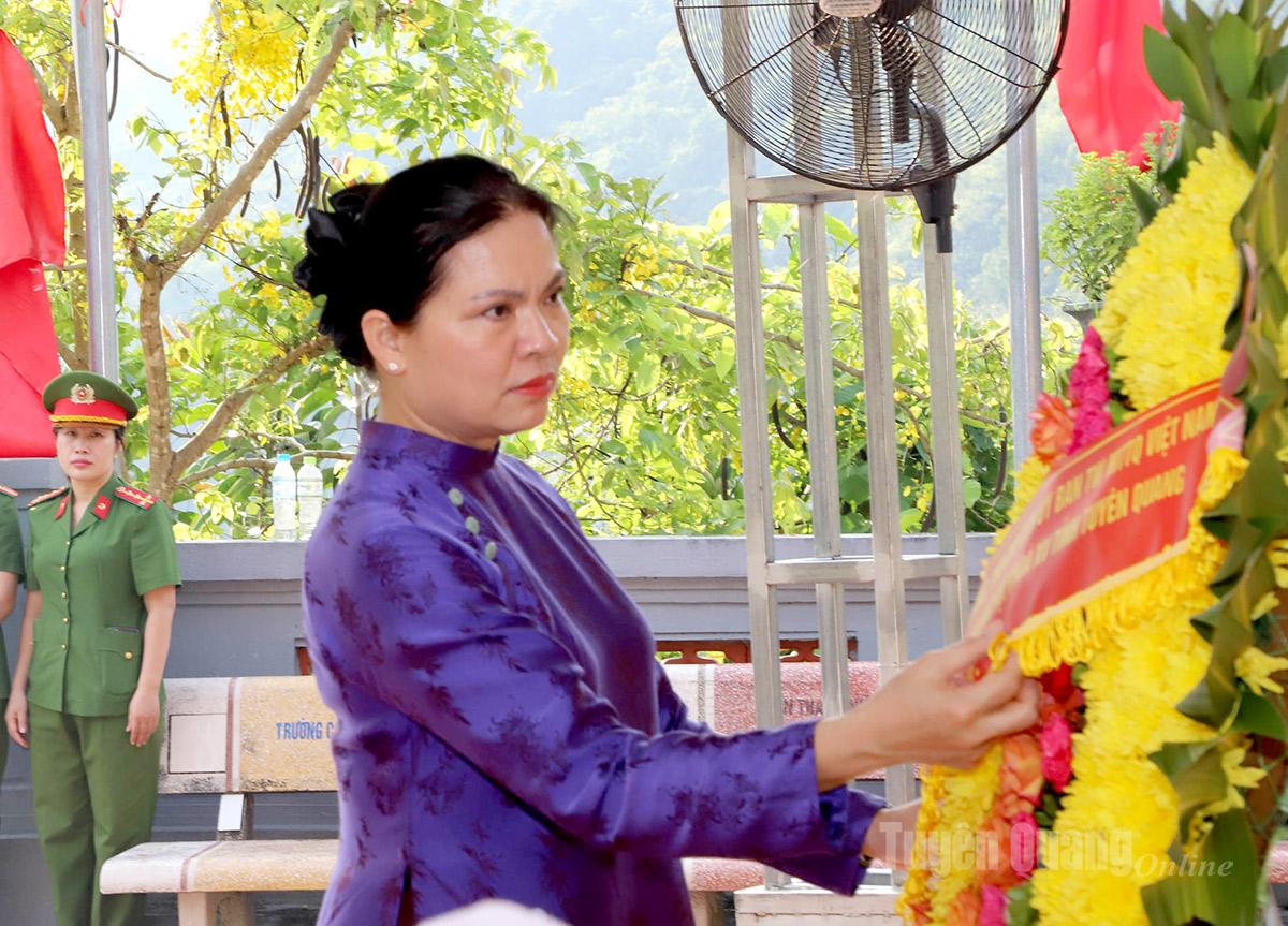Phó Chủ tịch Ủy ban Trung ương MTTQ Việt Nam Hà Thị Nga và các đại biểu dâng hoa viếng các Anh hùng liệt sĩ tại Nghĩa trang liệt sĩ Quốc gia Vị Xuyên.