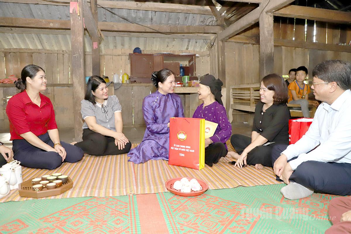 Phó Chủ tịch Ủy ban Trung ương MTTQ Việt Nam Hà Thị Nga tặng quà Mẹ liệt sĩ Lý Thị Xoa, thôn Nà Toong, xã Thanh Thủy.