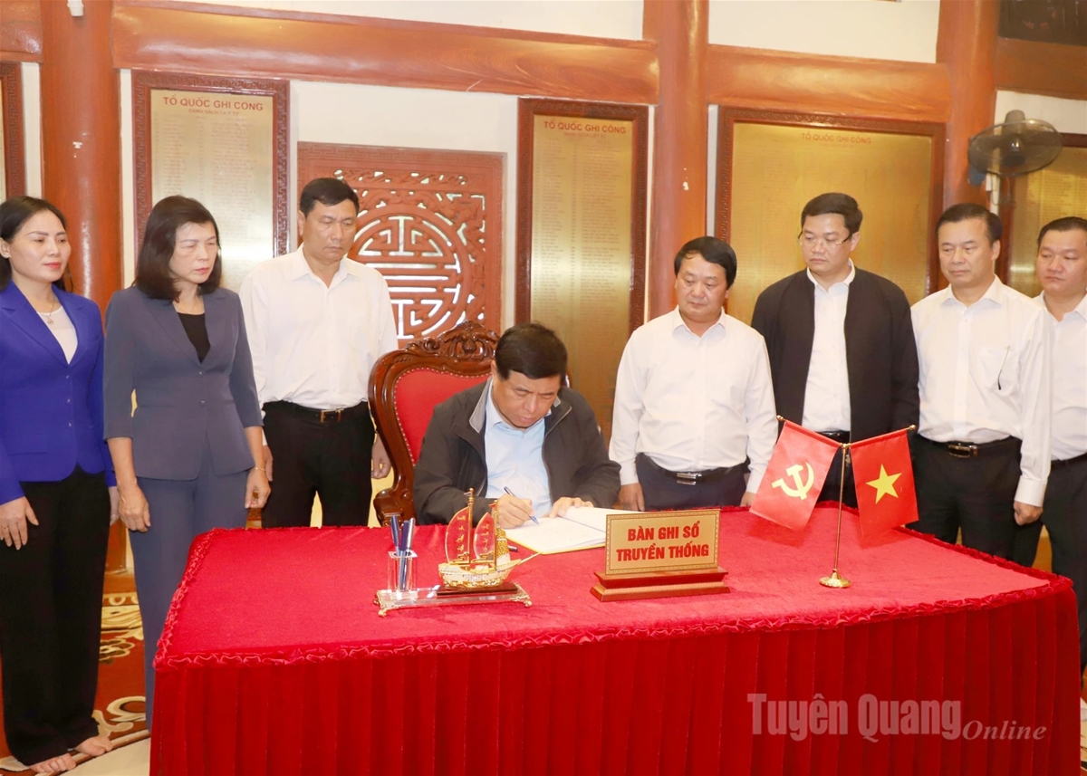 Phó Thủ tướng Chính phủ Nguyễn Chí Dũng ghi Sổ truyền thống tại Nghĩa trang Liệt sỹ Quốc gia Vị Xuyên.