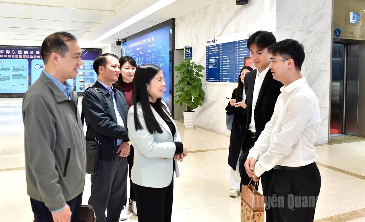 Đoàn đã khảo sát tại Trung tâm Hợp tác Đổi mới Sáng tạo Trí tuệ nhân tạo (AI) Trung Quốc - ASEAN. Đây là một trong những trung tâm nghiên cứu và ứng dụng AI hàng đầu, đóng vai trò là cầu nối hợp tác công nghệ giữa Trung Quốc với các nước thành viên ASEAN. Trung tâm có chiến lược phát triển nhiều lĩnh vực trọng tâm nghiên cứu như: AI trong nông nghiệp thông minh, chăm sóc sức khỏe, giáo dục số, logistics và an ninh mạng. Đoàn cũng được trực tiếp tham quan một số phòng lab, trải nghiệm các sản phẩm demo và thảo luận về cơ chế hợp tác, đào tạo nguồn nhân lực chất lượng cao.