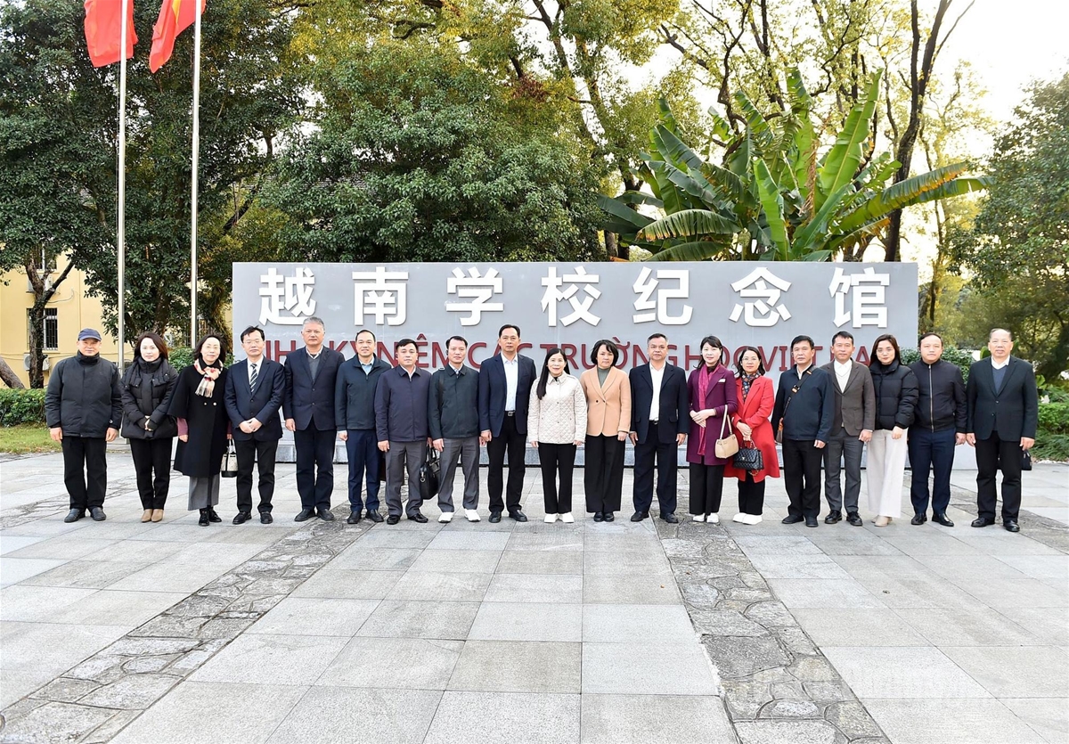Đoàn công tác HĐND tỉnh thăm Khu nhà lưu niệm Trường học Việt Nam trong khuôn viên Đại học Sư phạm Quảng Tây.
